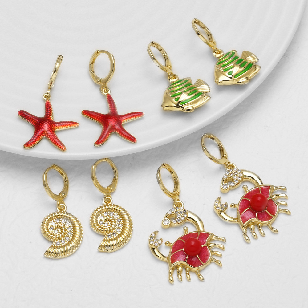 AS jewelry ocean wind drop oil color starfish earrings female gold-plated fish earrings female erz05