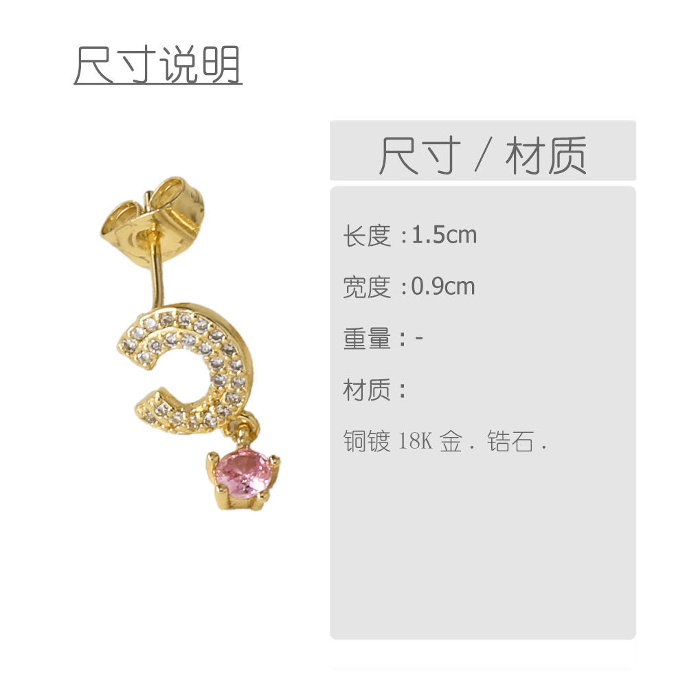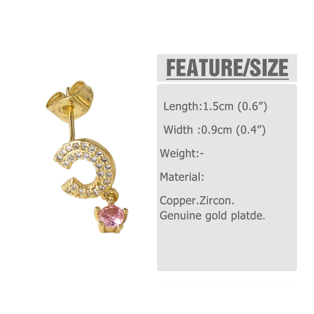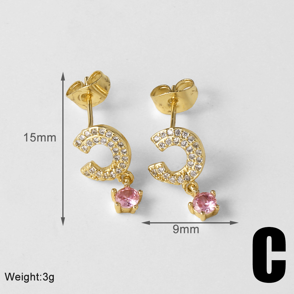 AS jewelry European and American micro-inlaid zircon C-shaped love pendant earrings copper plated 18k gold earrings earrings ert73