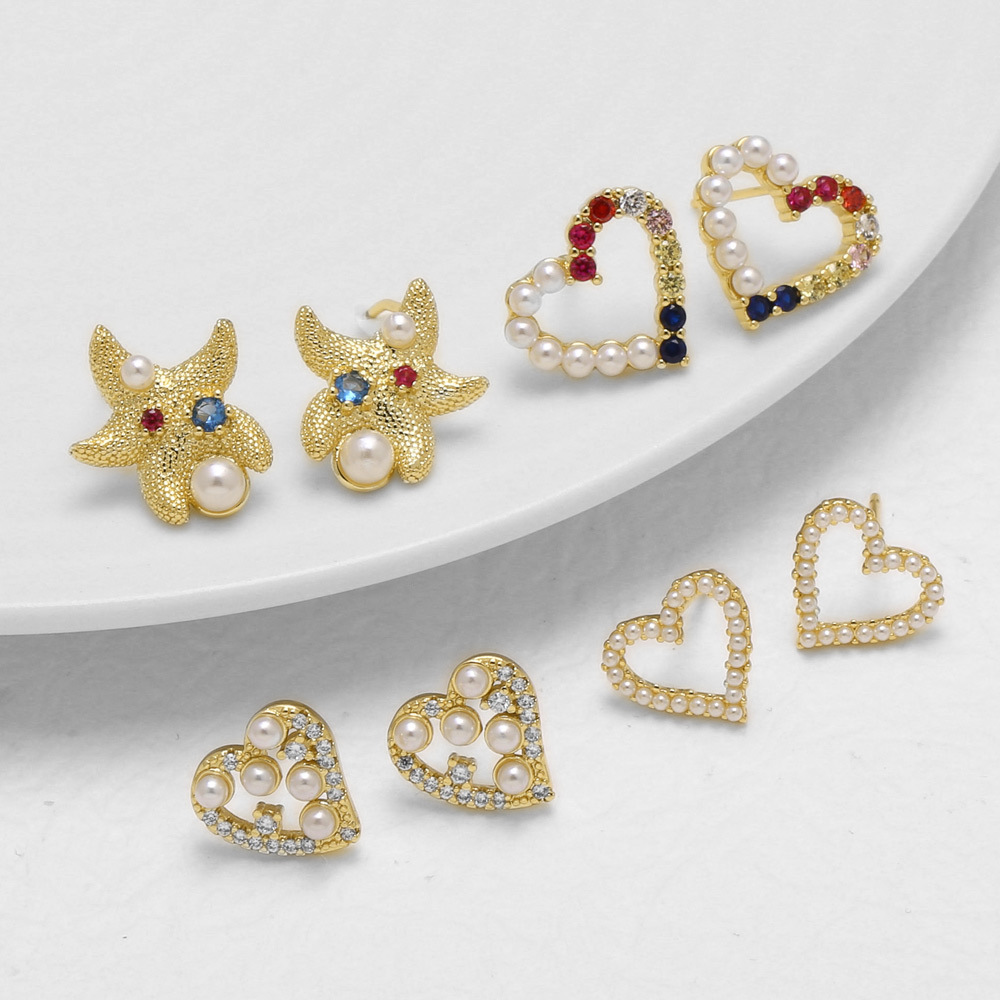 AS jewelry new pearl starfish love earrings copper plated 18k gold micro inlaid zircon earrings earrings ery63
