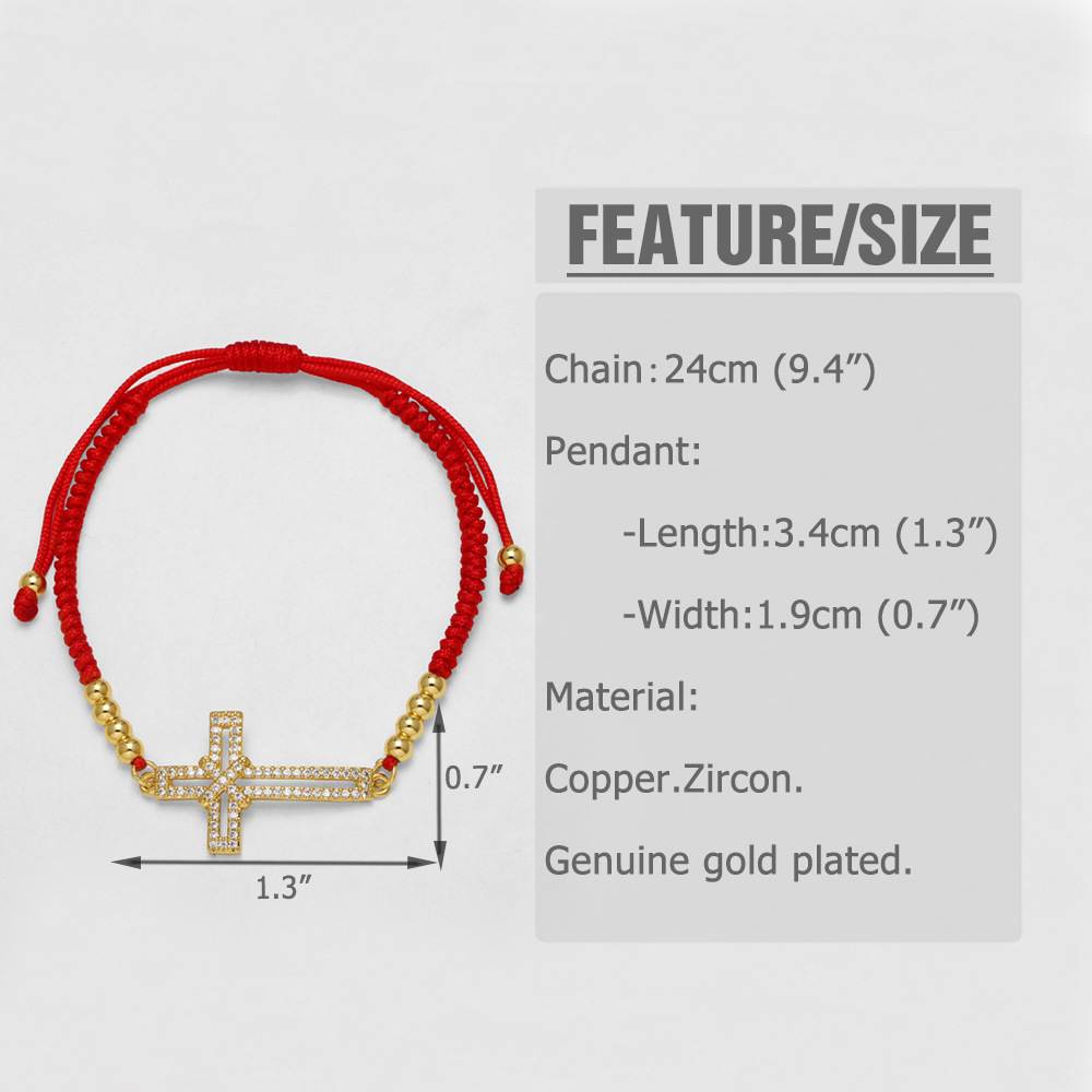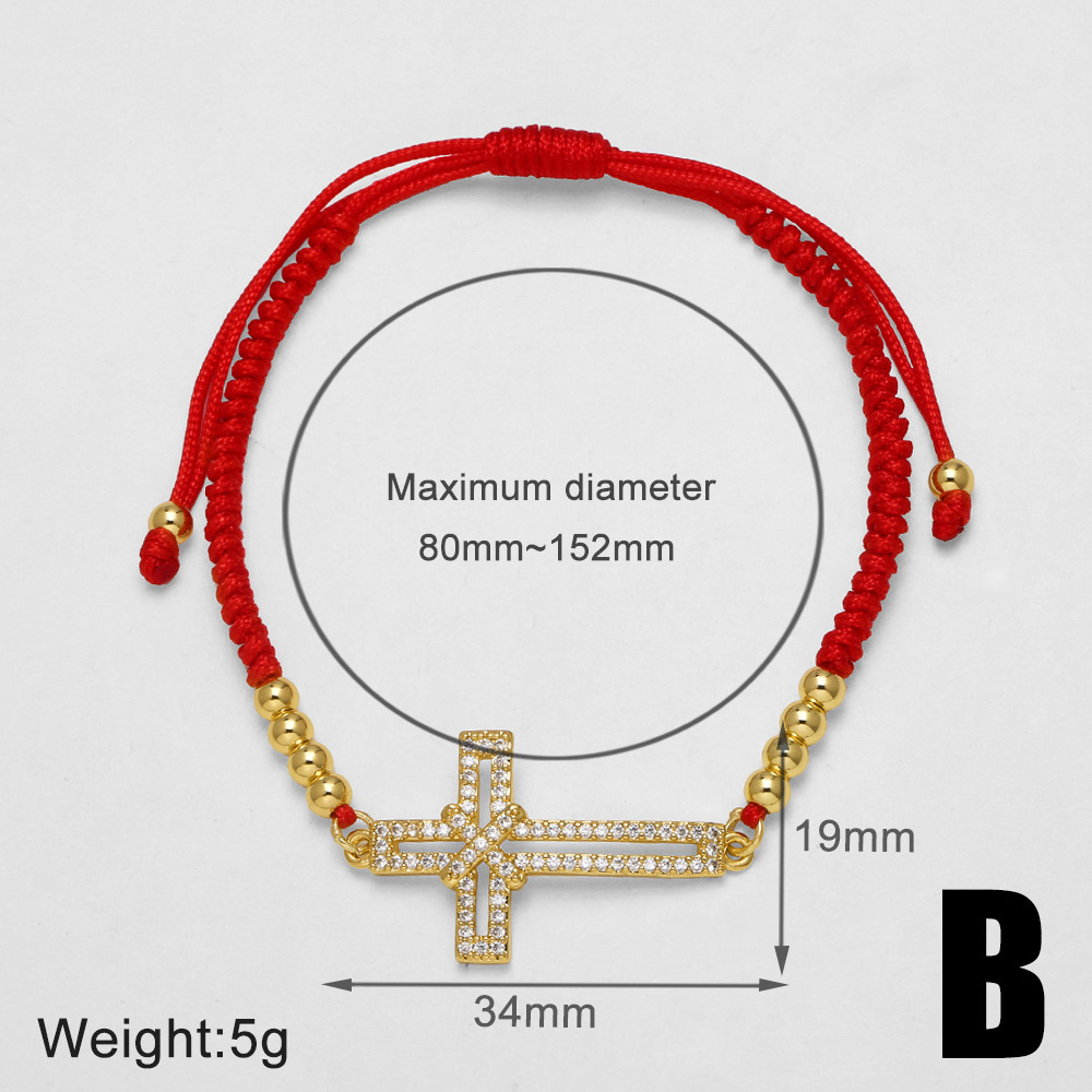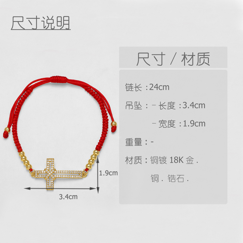 AS jewelry European and American inlaid zircon Virgin Mary cross hand-woven red rope bracelet brj74