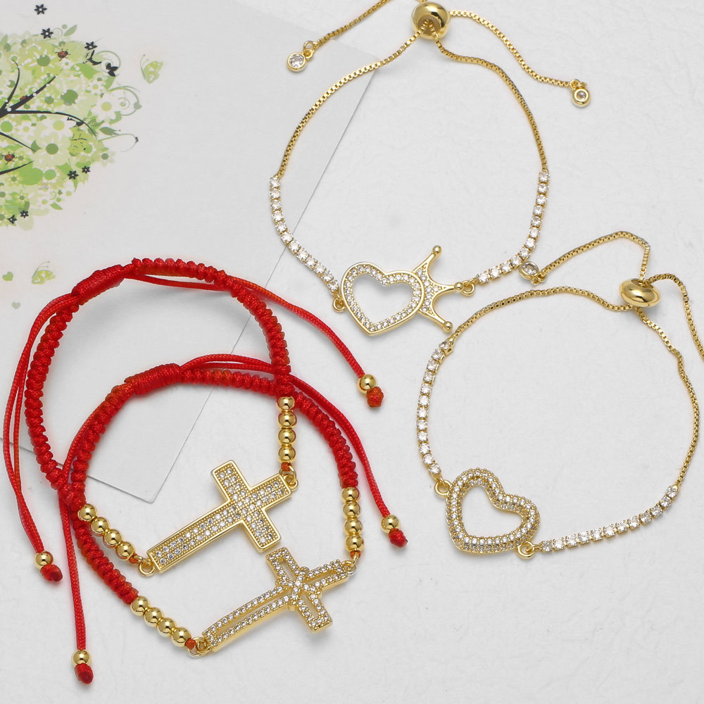 AS jewelry European and American micro-inlaid zircon cross bracelet love heart gold-plated bracelet female brc73