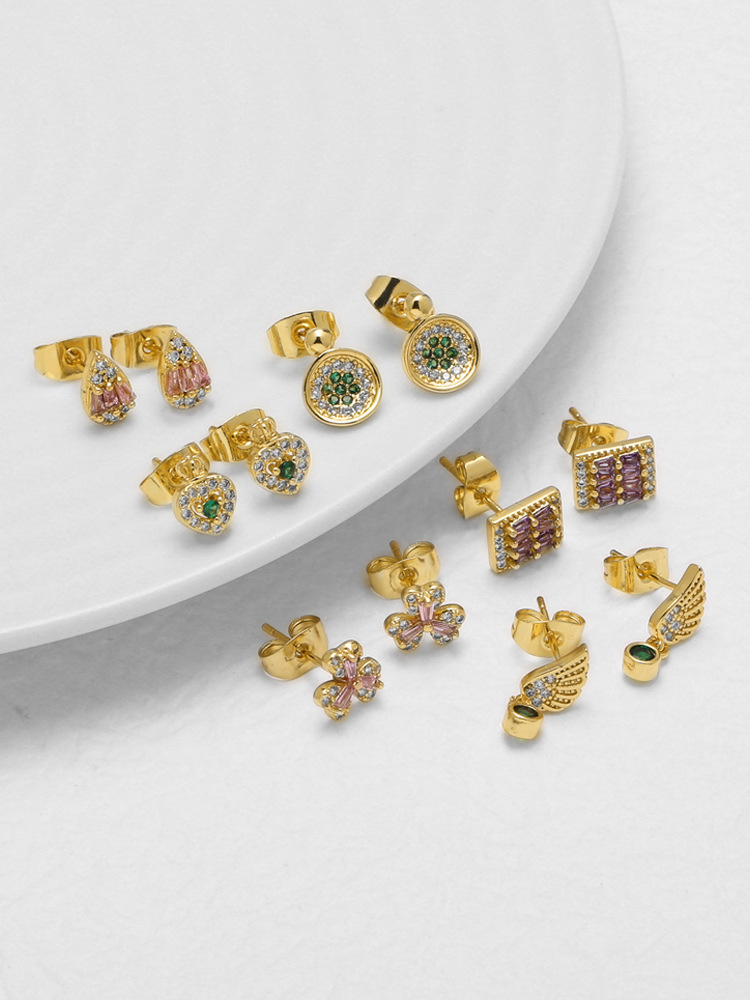 AS jewelry micro-inlaid zircon earrings copper plated 18k gold love heart earrings earrings female ery08