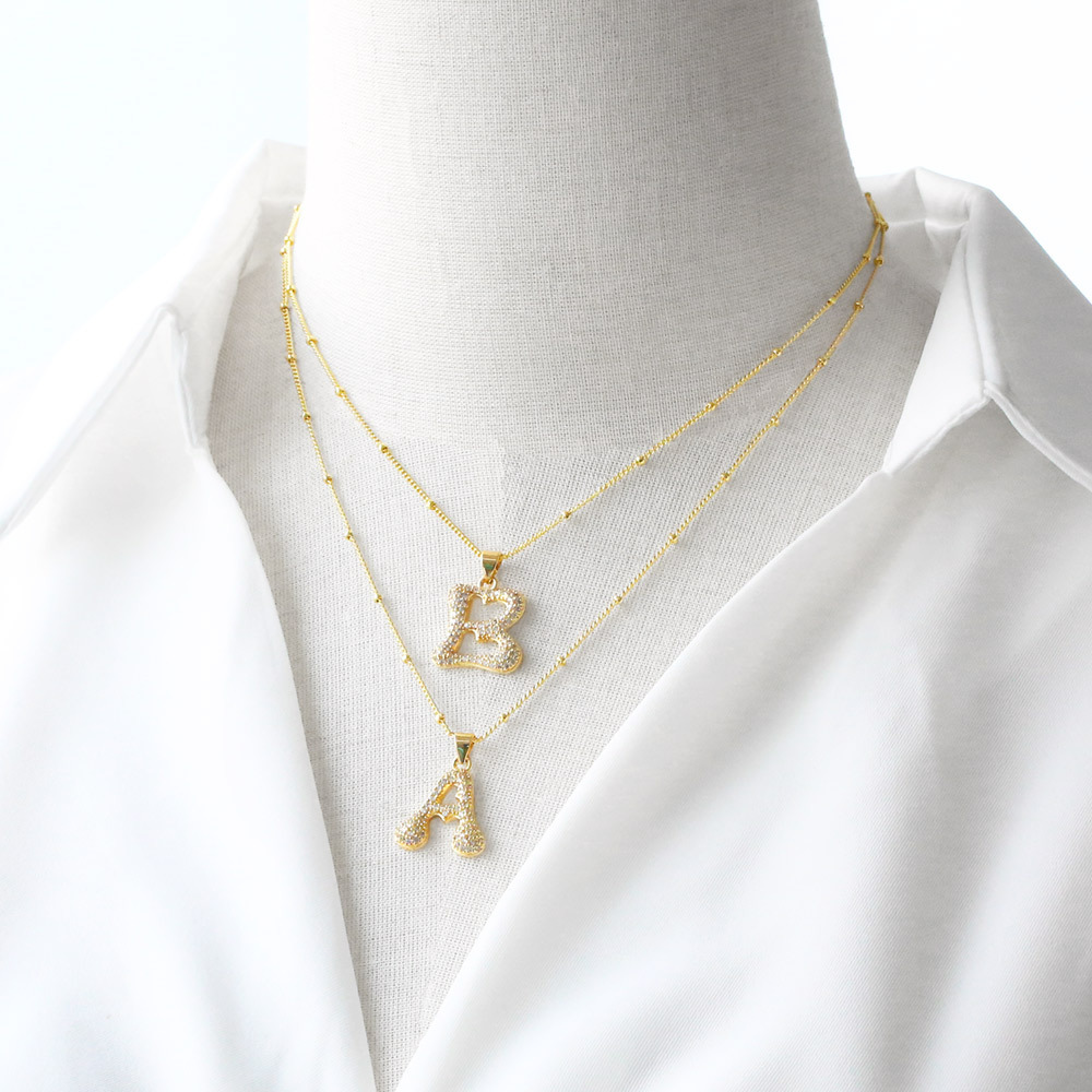 Letter necklace European and American new color zircon necklace with diamond surname English AZ letter necklace nkp25