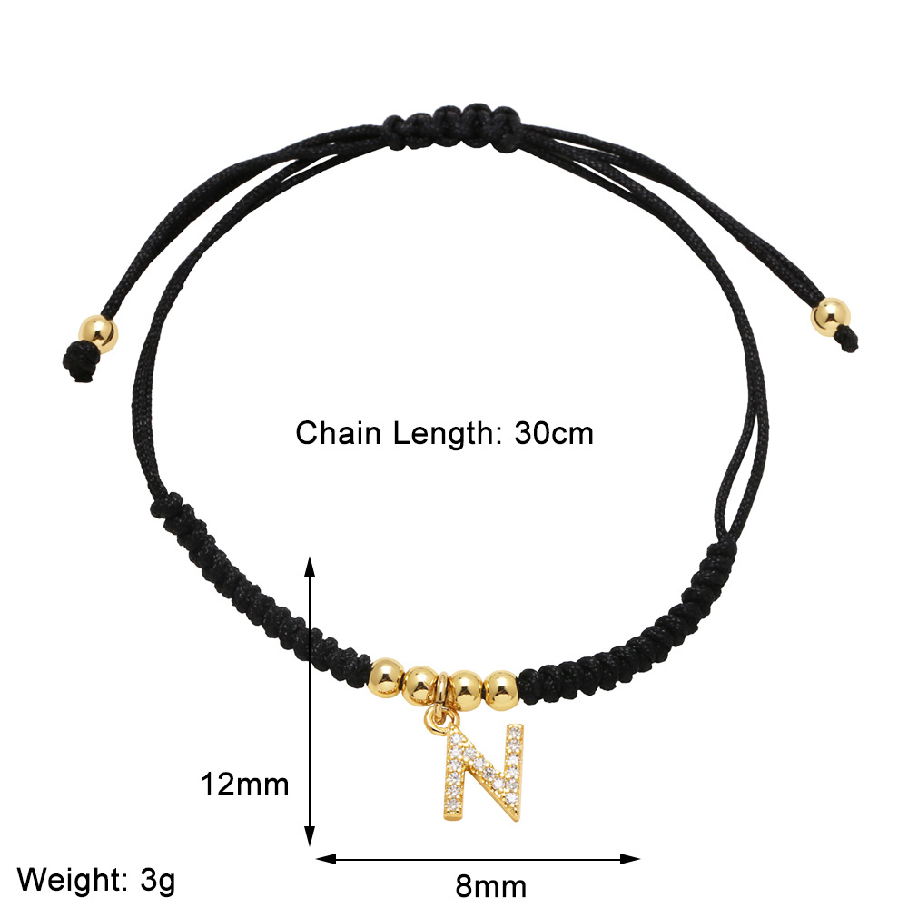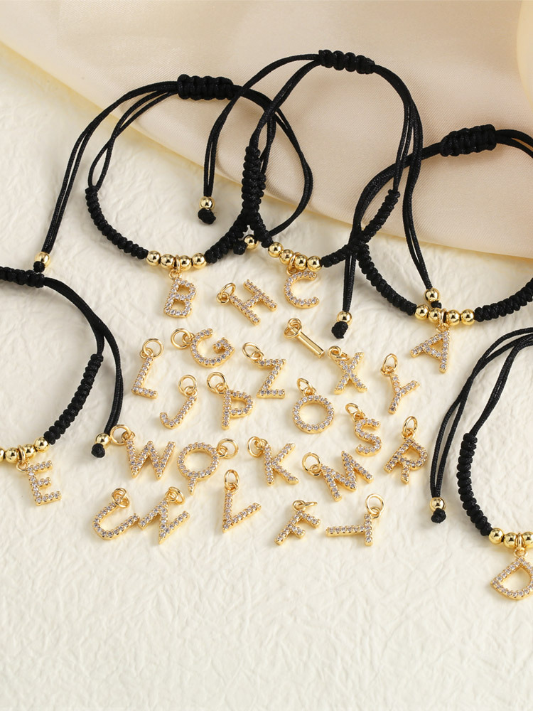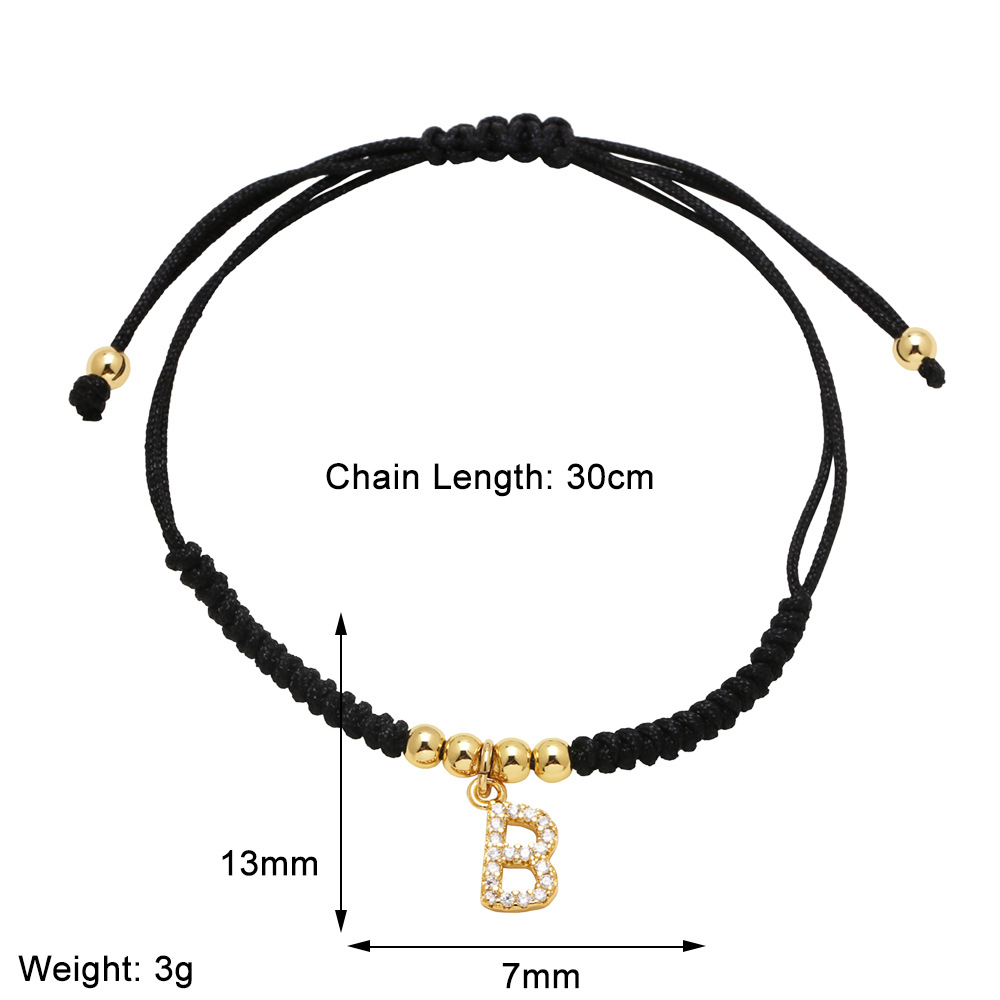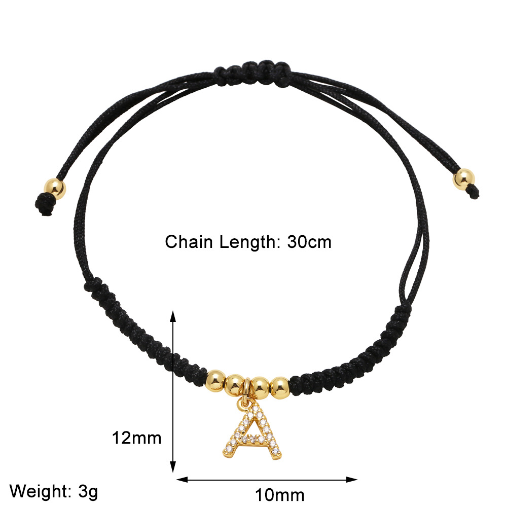 AS jewelry full zirconium 26 English letters bracelet copper plated real gold adjustment jewelry brm62