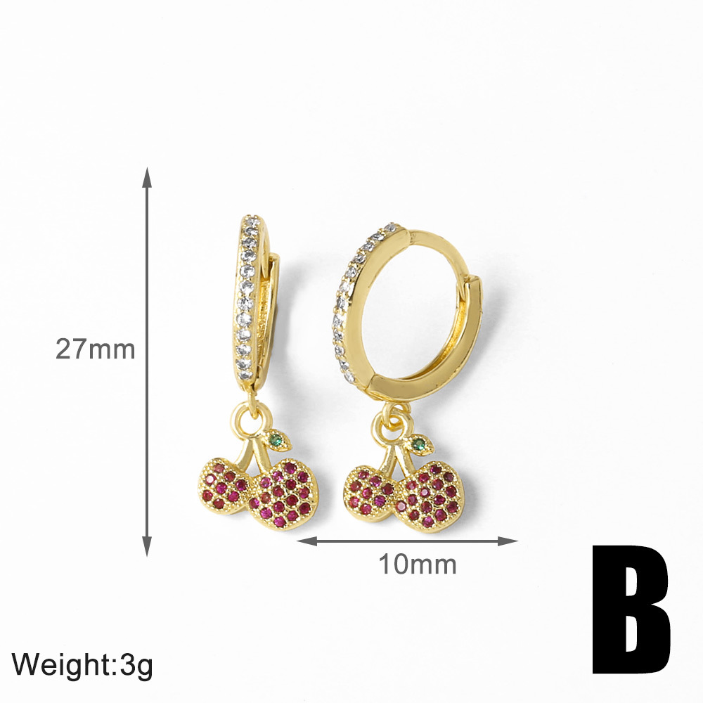 AS jewelry European and American new copper plated 18k gold inlaid zircon fruit cherry earrings earrings earrings female ery37