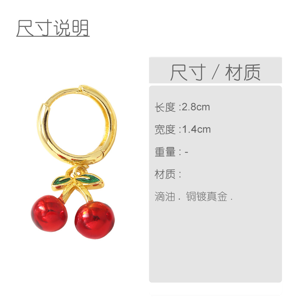 AS jewelry European and American new hot selling fruit cherry copper plated 18k gold earrings earrings female ers28 ring