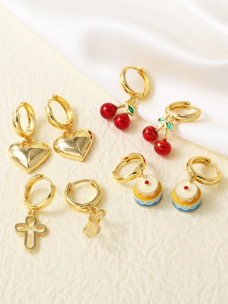 AS jewelry European and American new copper plated real gold cross love fruit cherry earrings earrings female erz78
