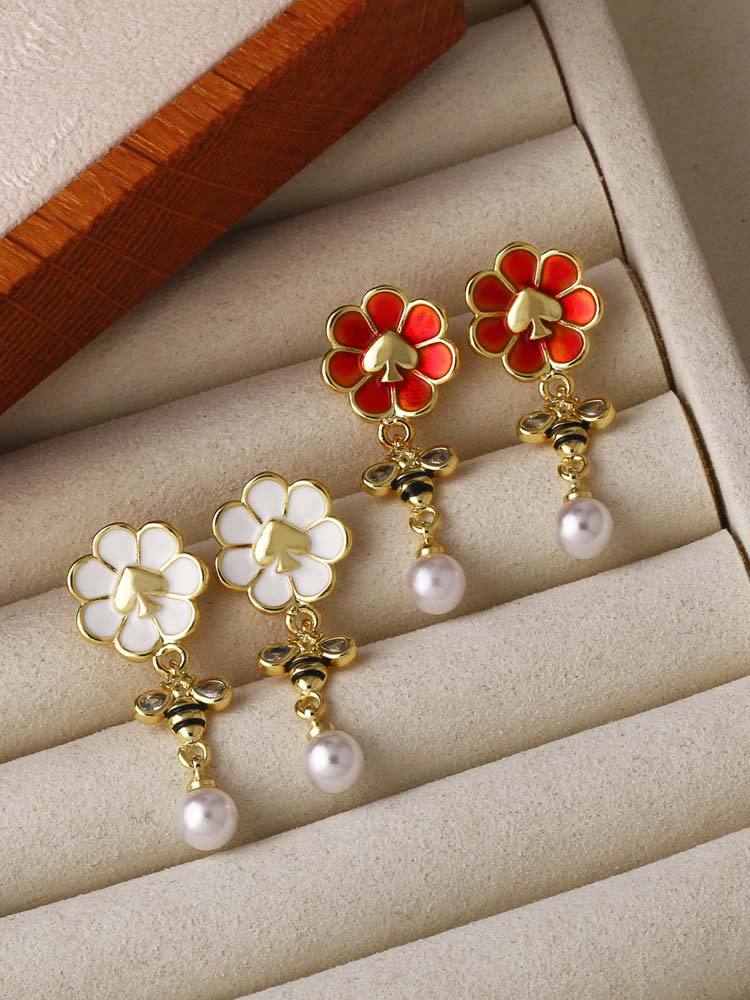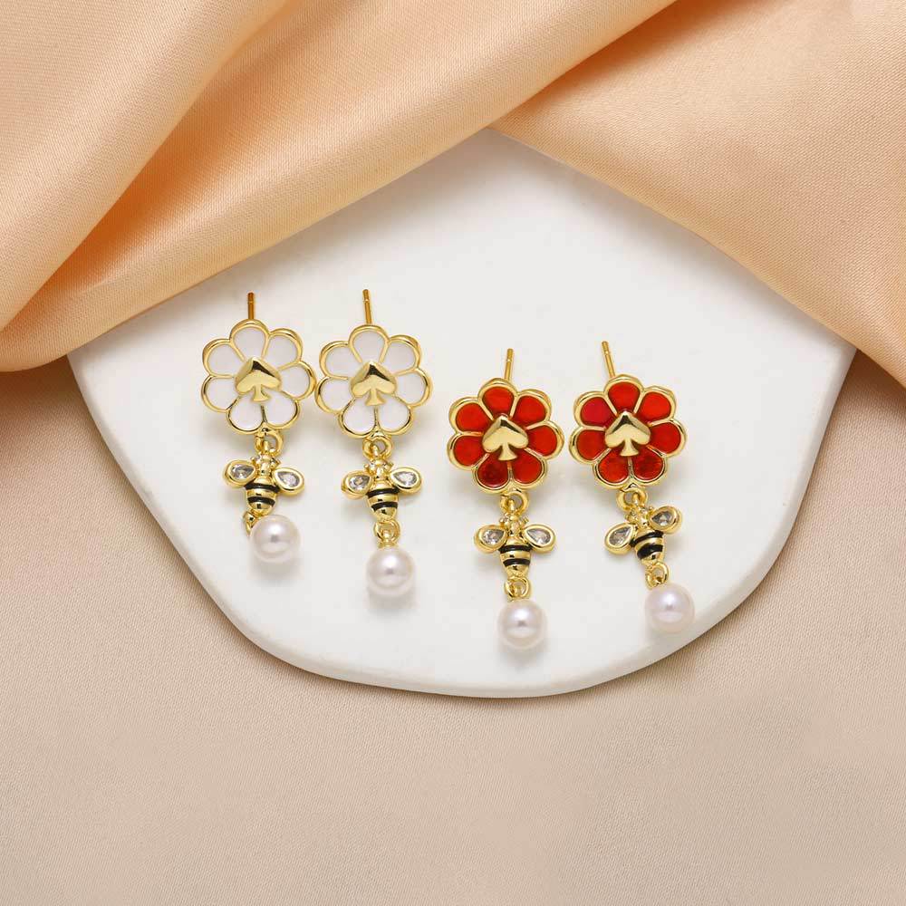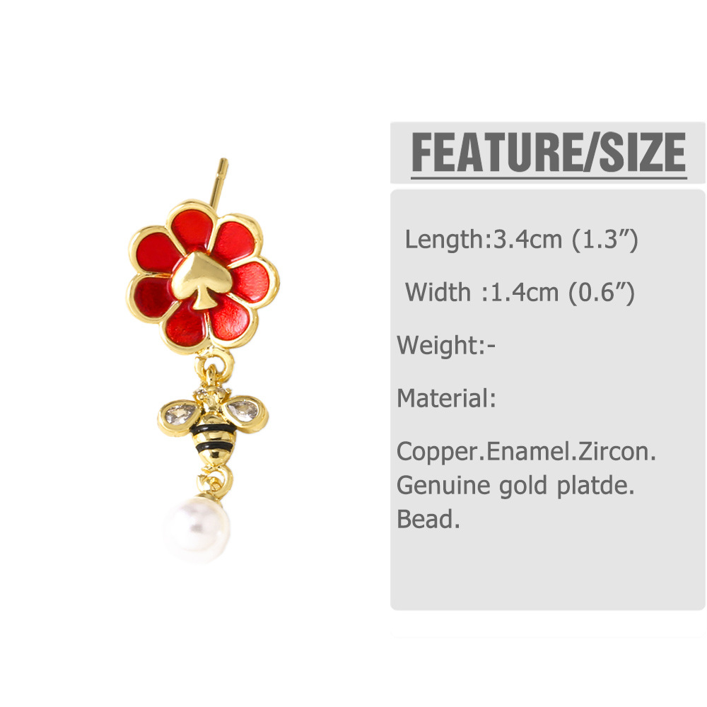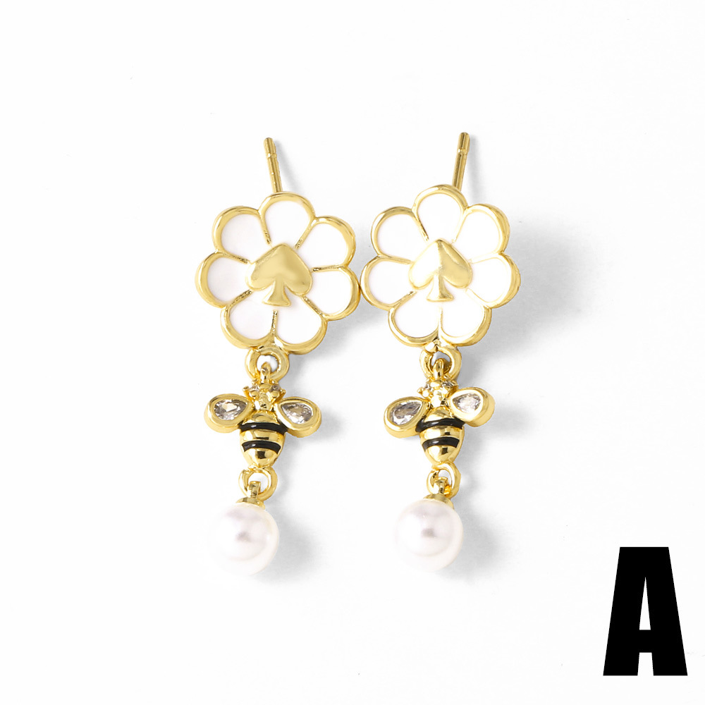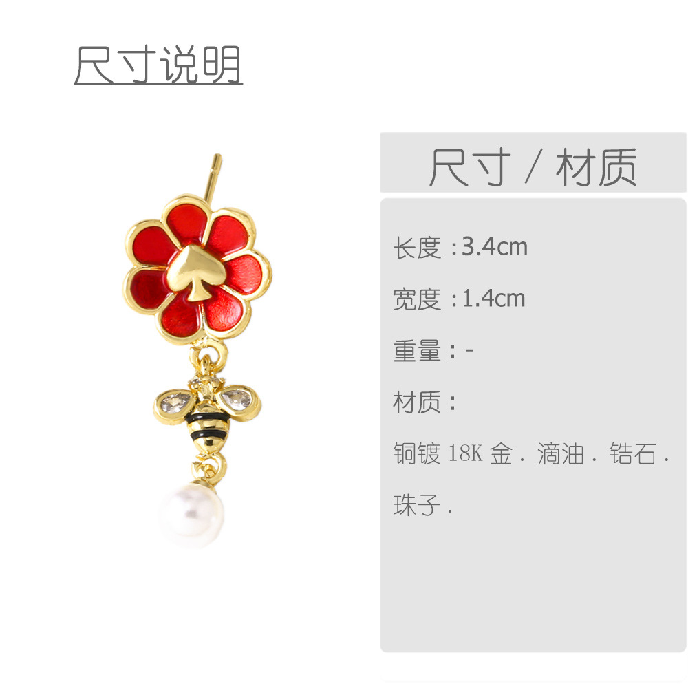AS jewelry European and American new flower bee oil drop pearl earrings women's copper plated real gold earrings era256