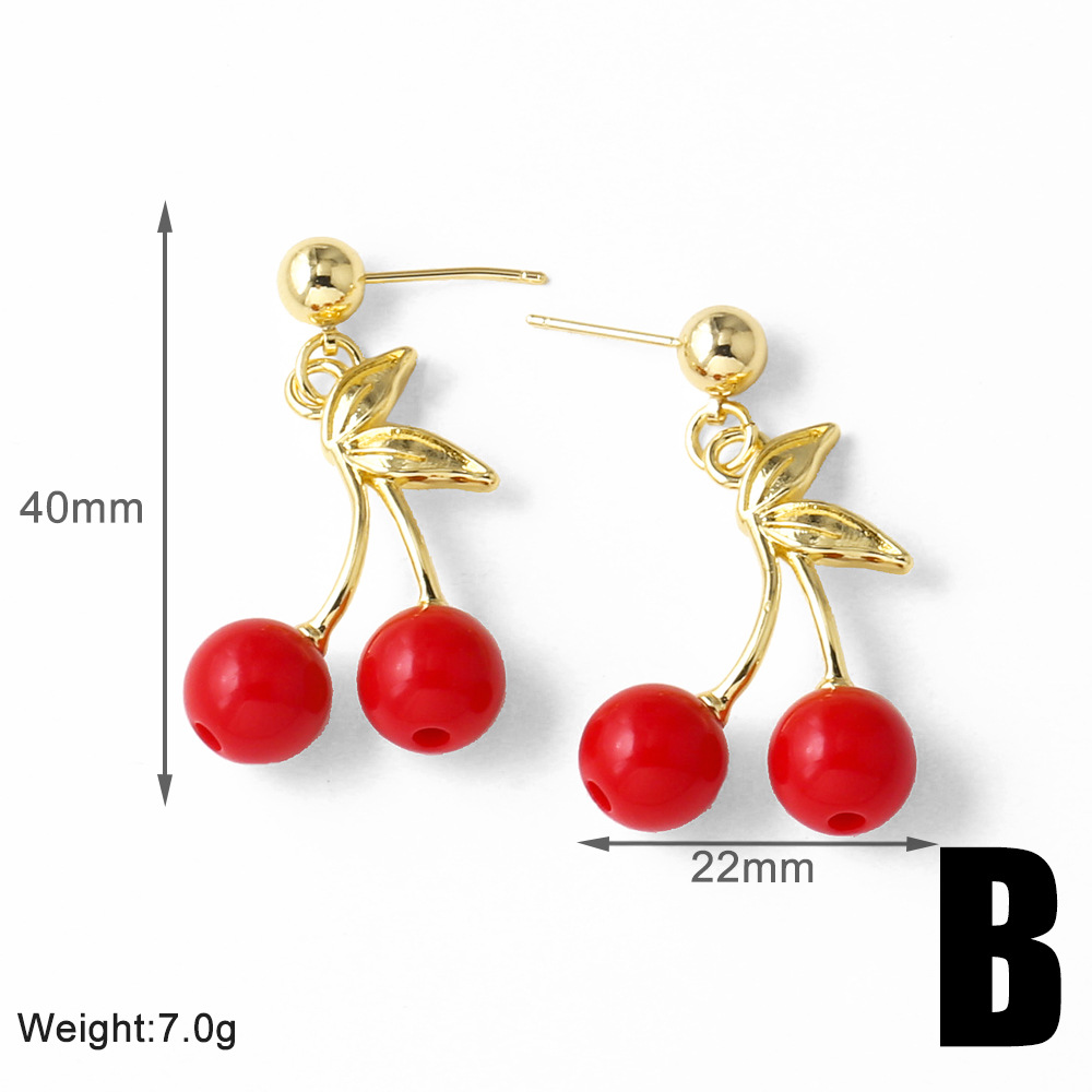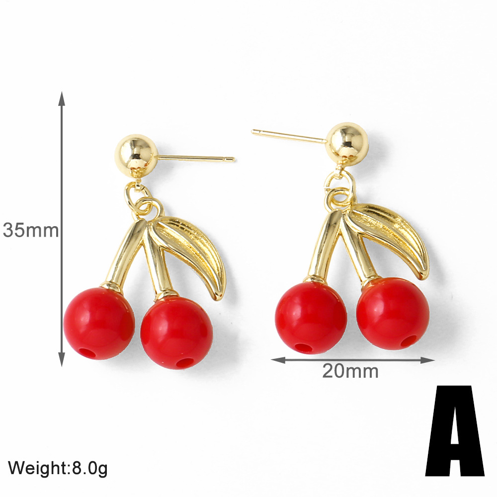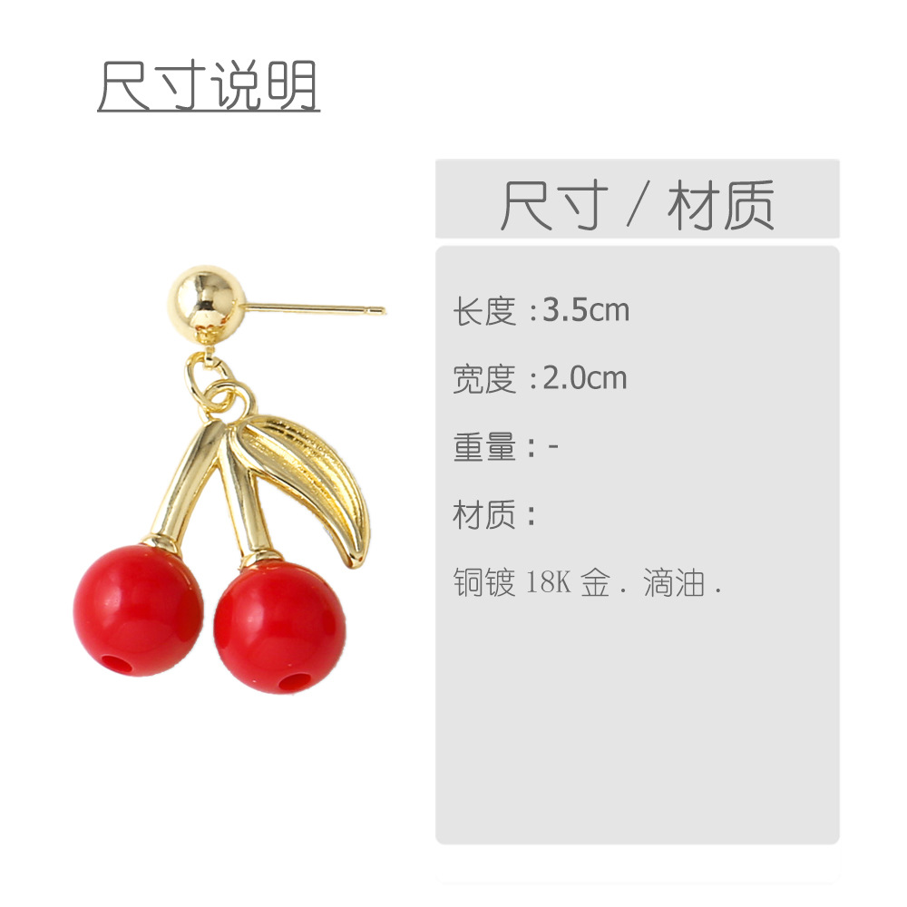 AS jewelry European and American new hot selling fruit cherry copper plated 18k gold earrings earrings female ers28 ring