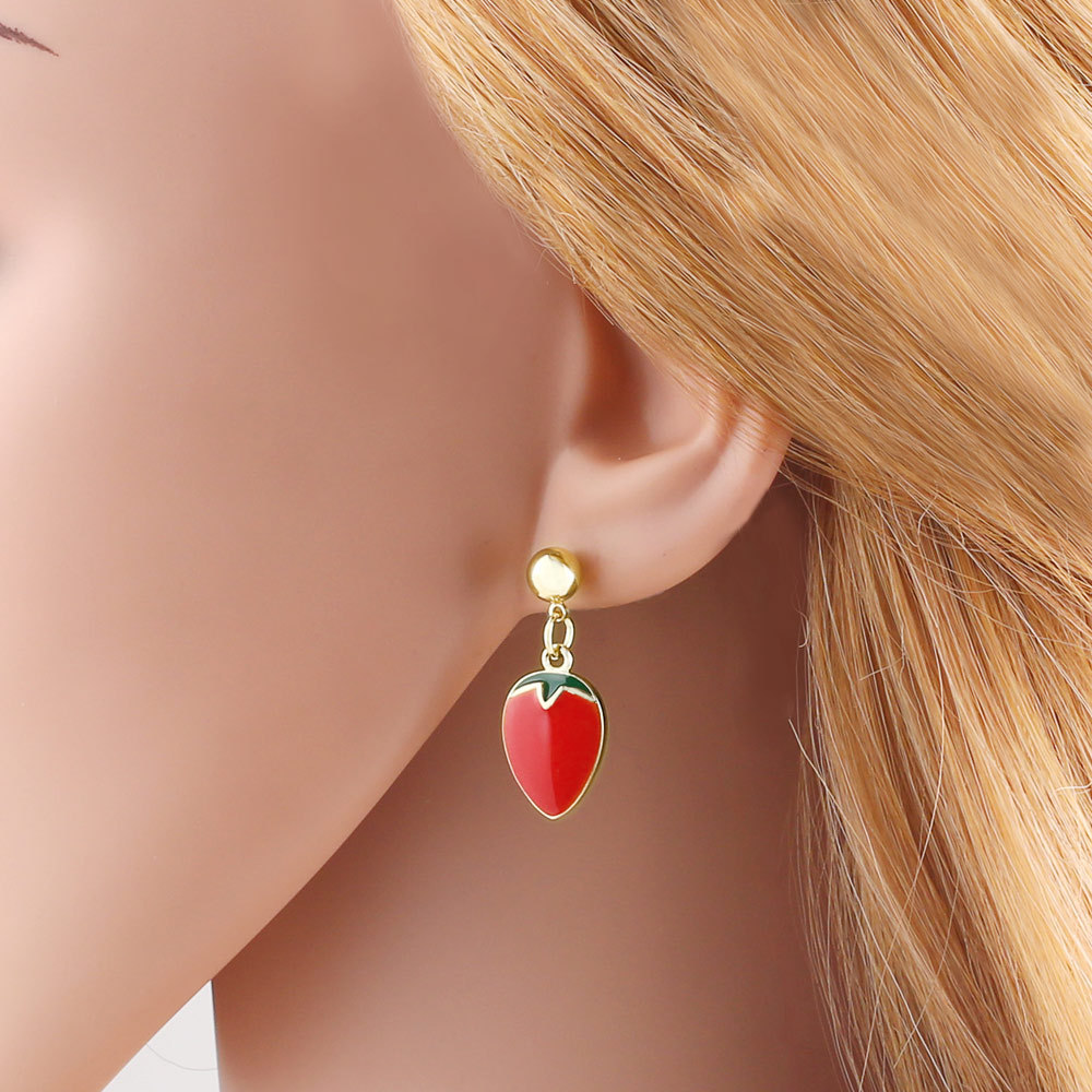 AS jewelry hot selling copper plated real gold oil drop fruit strawberry mushroom earrings earrings ers75