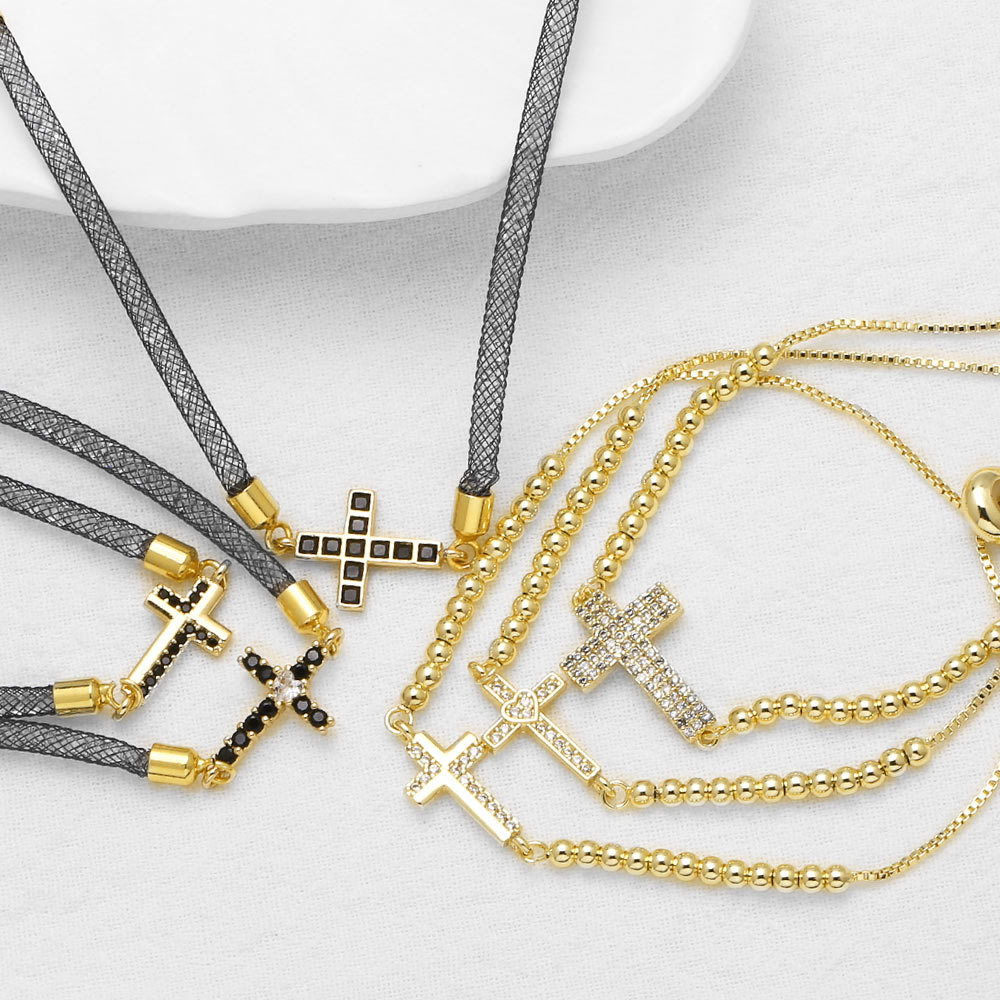 AS jewelry European and American new full zircon gold-plated cross pendant bracelet hand jewelry female bre20