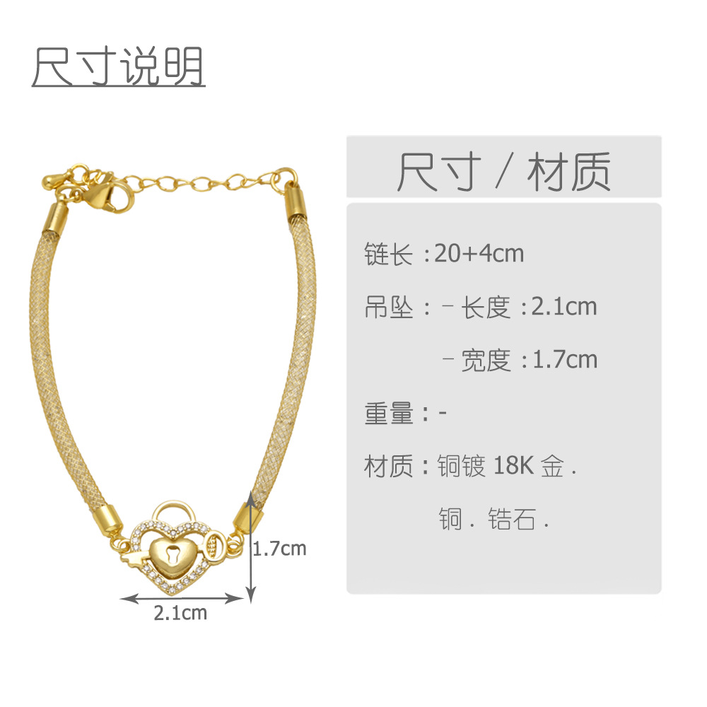 AS jewelry European and American new high-end full zircon heart bracelet copper plated 18k gold hand jewelry brn07