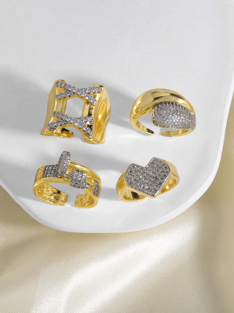 AS jewelry European and American new love heart two-color xx open ring gold-plated zircon ring rir44
