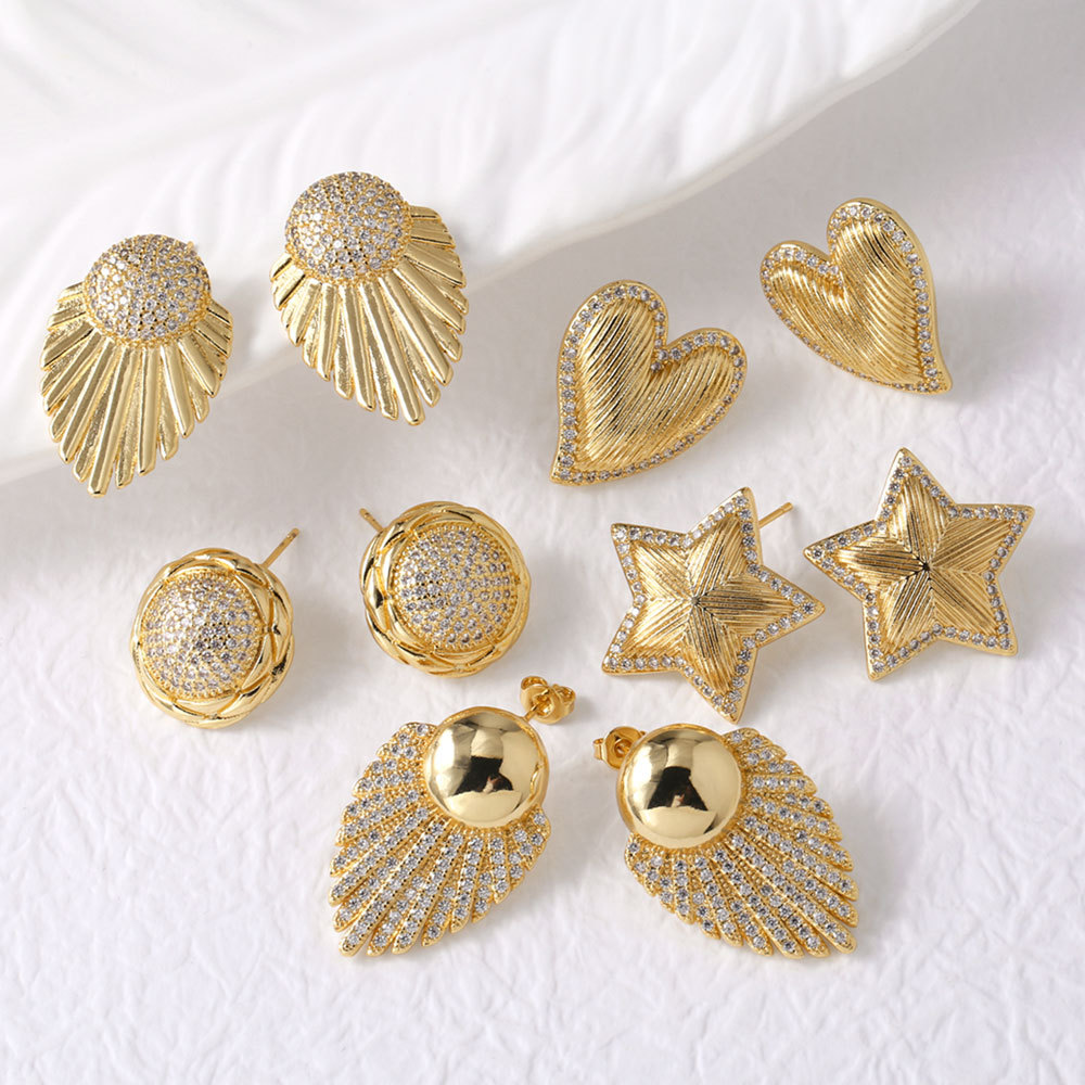 AS jewelry European and American new love star leaf full zircon earrings copper plated real gold earrings female ers02