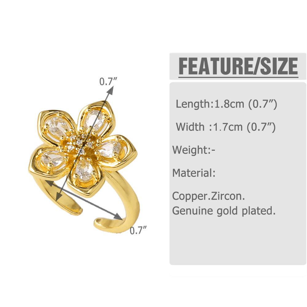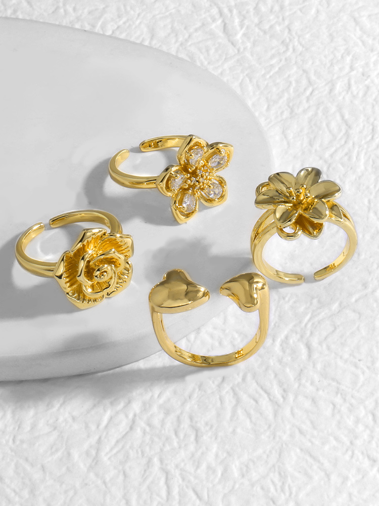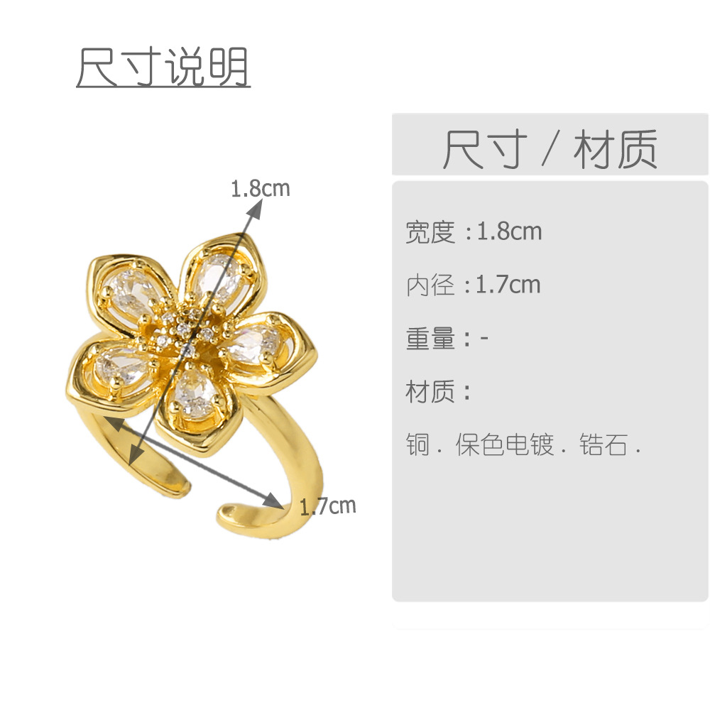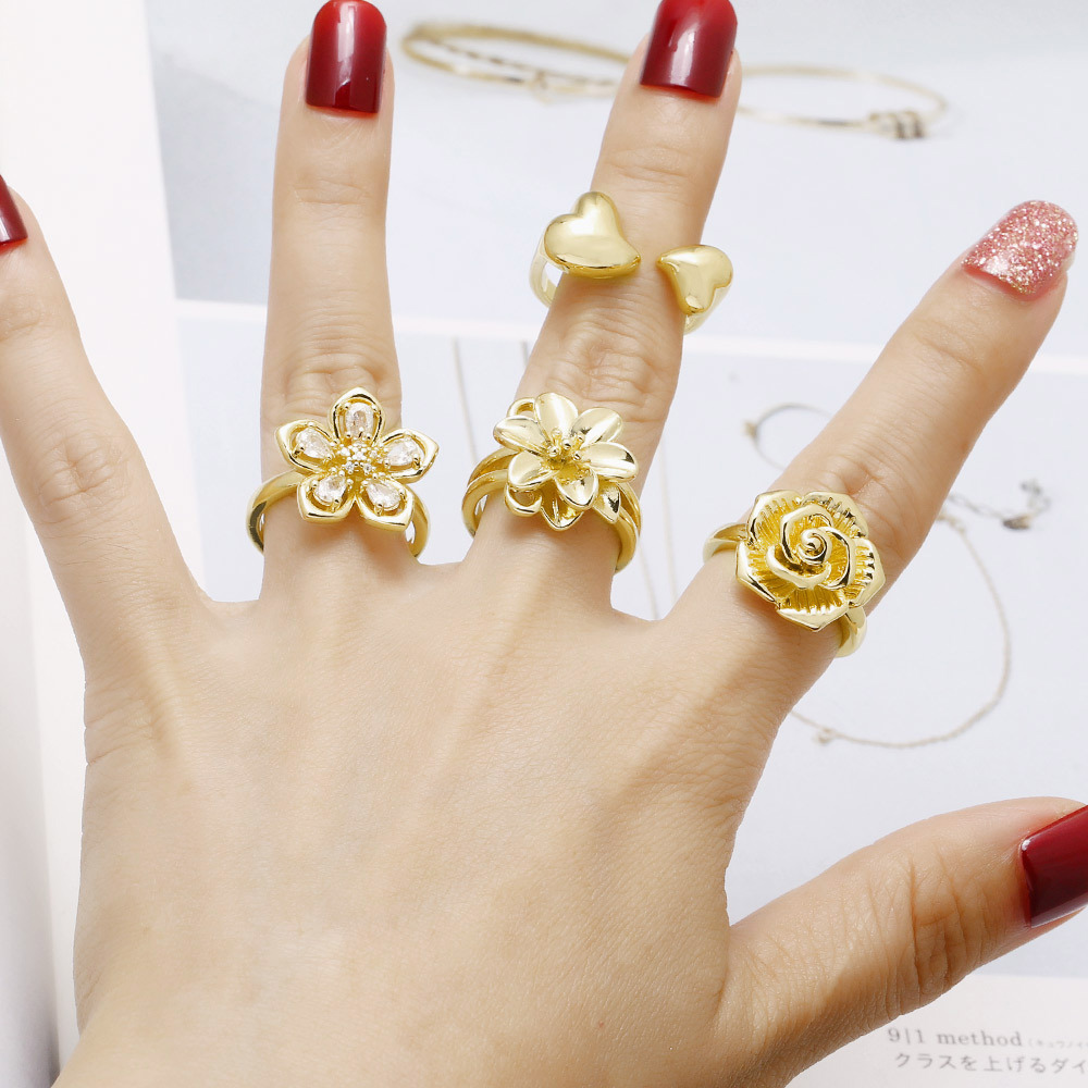 AS jewelry European and American new smooth copper plated 18k gold rose flower open ring female riq89 ring