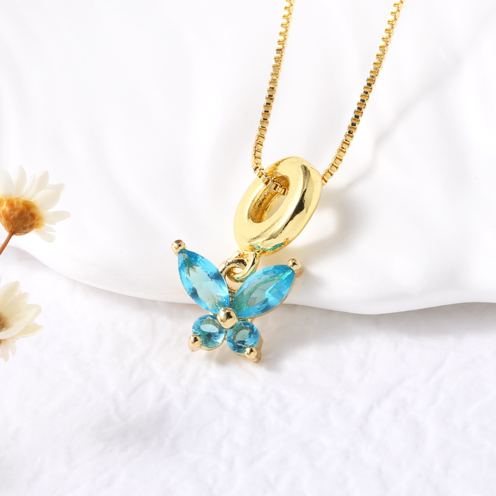 AS jewelry European and American niche design colorful butterfly pendant necklace gold-plated zircon clavicle chain nkb572