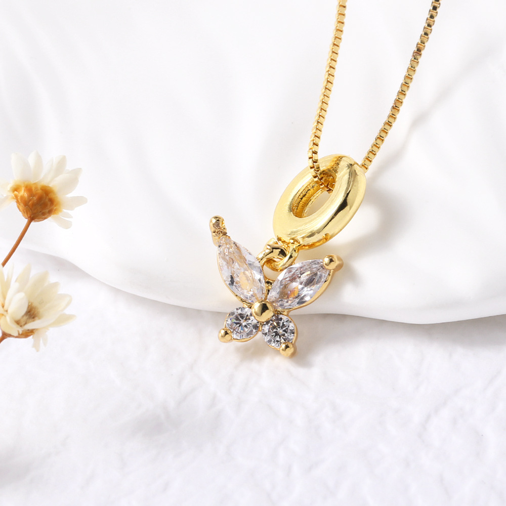 AS jewelry 26 English letters necklace female copper plated real gold inlaid zircon clavicle chain nky42
