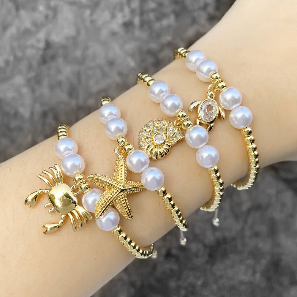 AS jewelry European and American ocean series sea turtle starfish bracelet female gold-plated pearl bracelet brg63