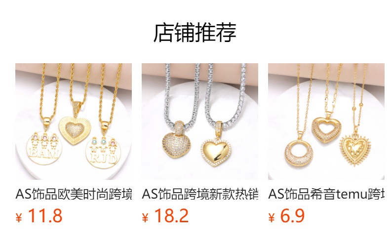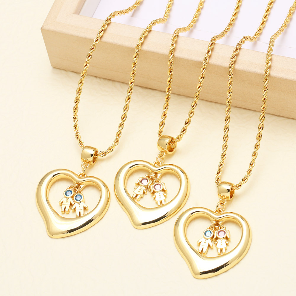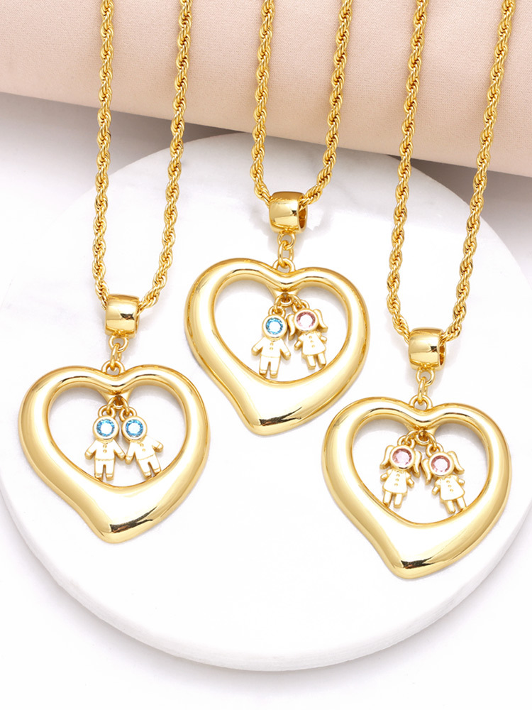 AS jewelry European and American peach heart boy and girl pendant necklace gold-plated zircon inlaid love clavicle chain nkb881