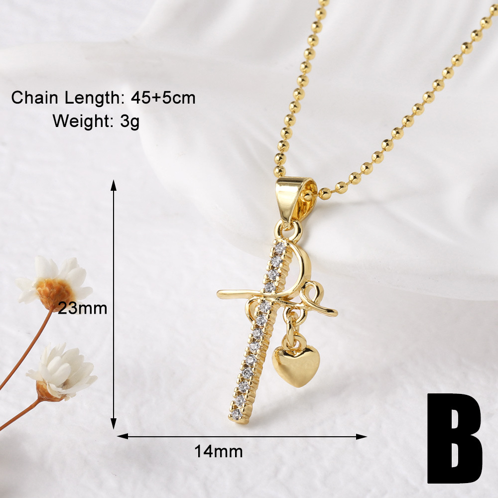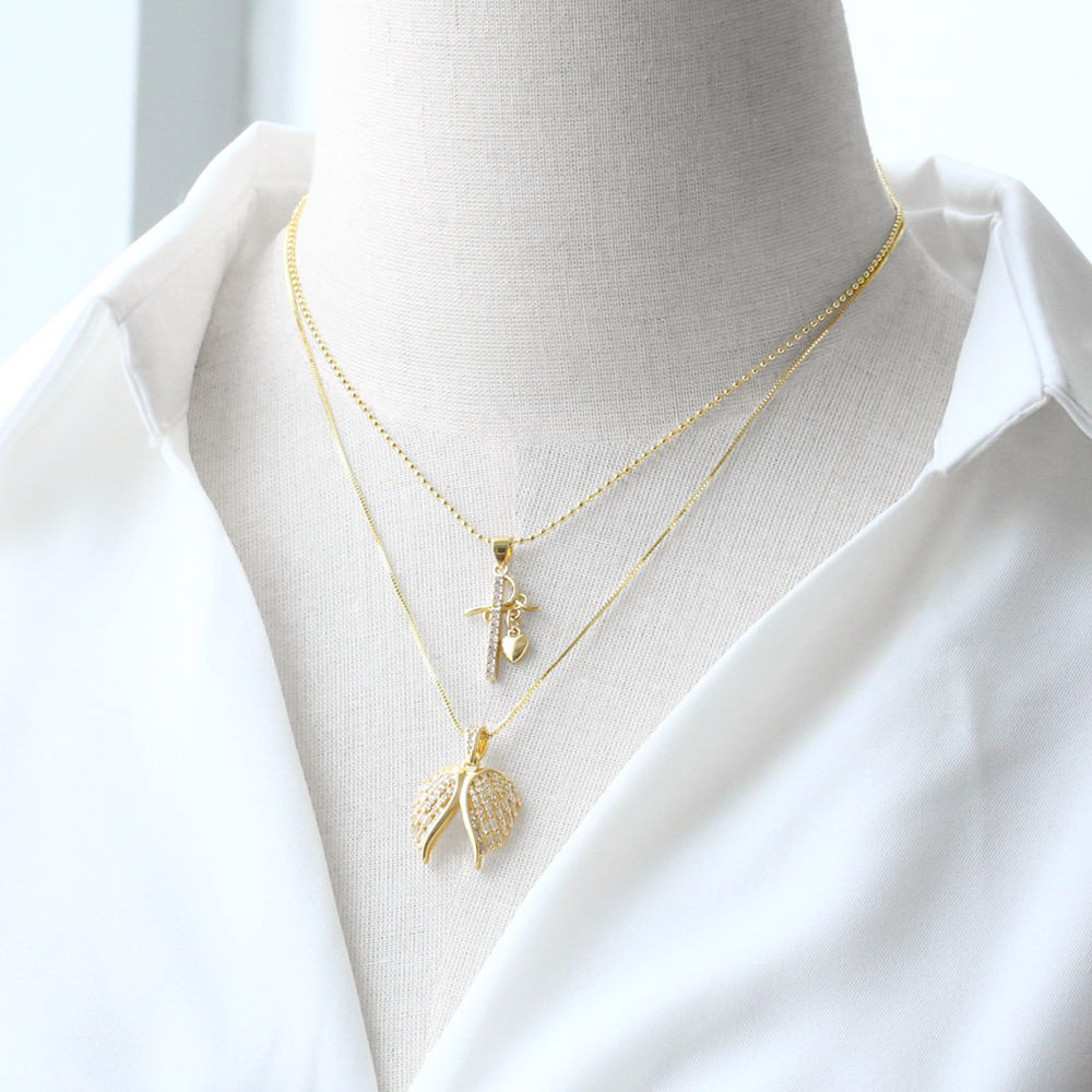 AS jewelry European and American pearl love cross necklace full zircon gold-plated wings clavicle chain nkb020