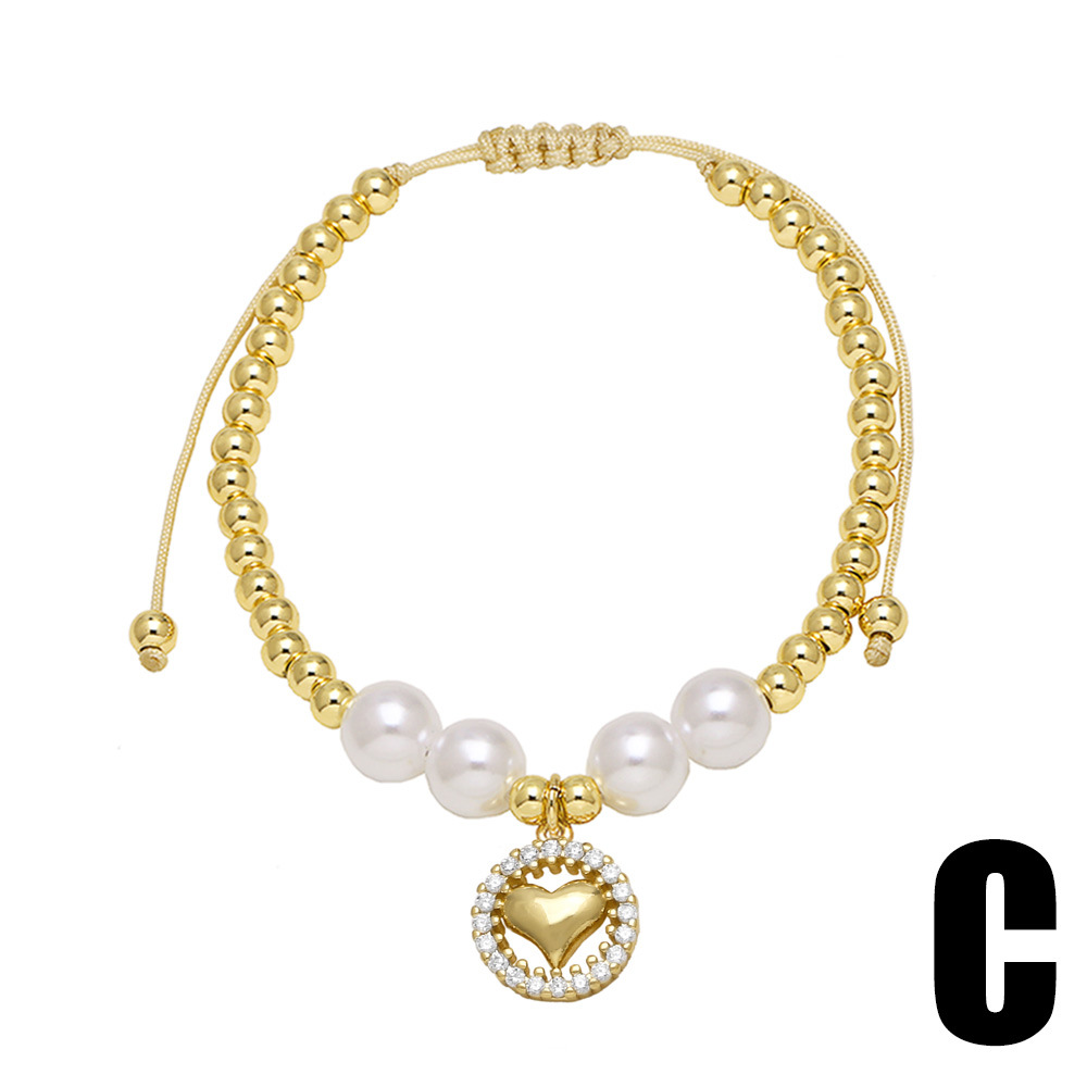 26 English letters bracelet female European and American copper beads pearl elastic bracelet fashion crown letter bracelet brf80