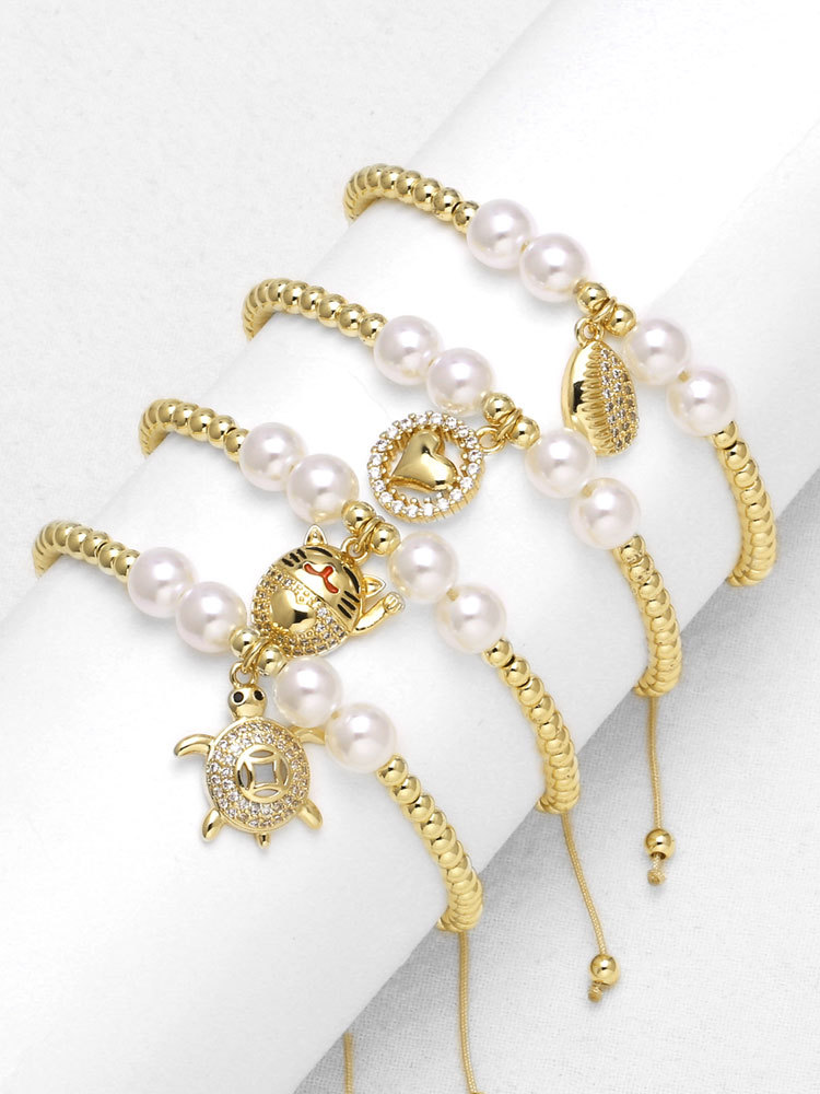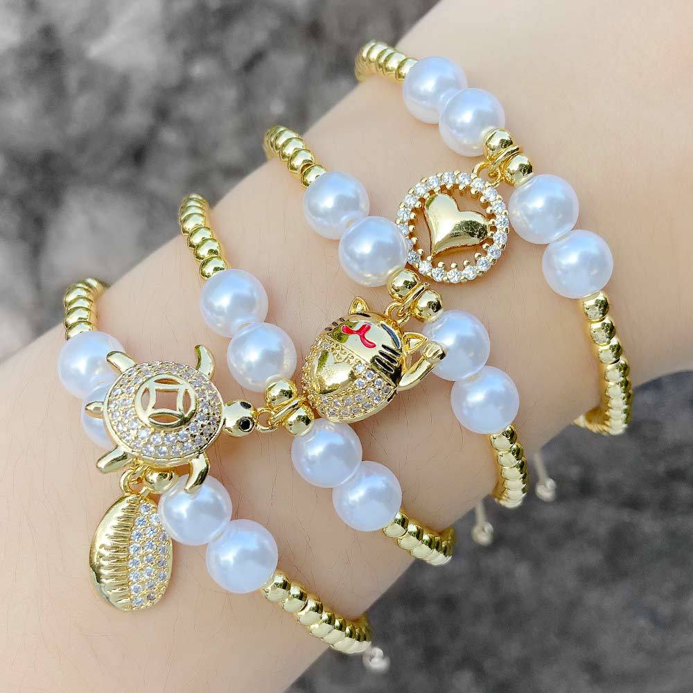 AS jewelry European and American pearl money turtle lucky cat pendant bracelet gold-plated love bracelet hand jewelry brh13