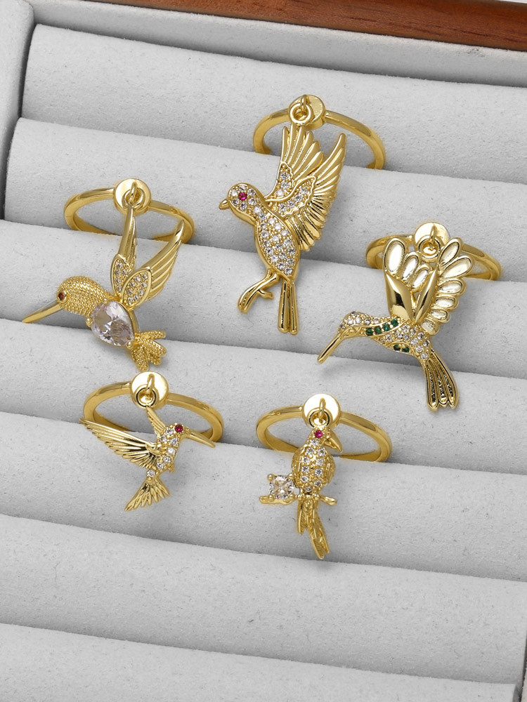 AS jewelry European and American popular bird ring copper plated real gold inlaid zircon ring ring ris63