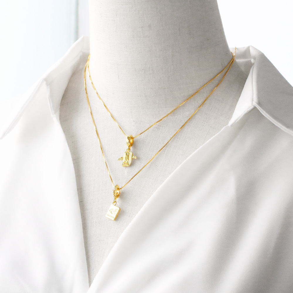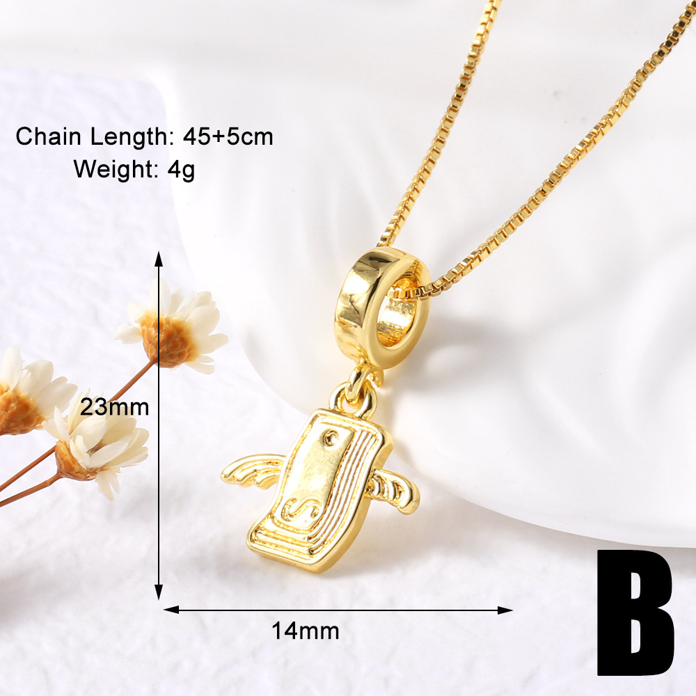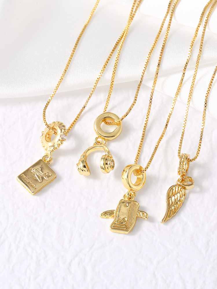 AS jewelry European and American retro wings earphone necklace smooth copper plated 18k near clavicle chain necklace female nkt99