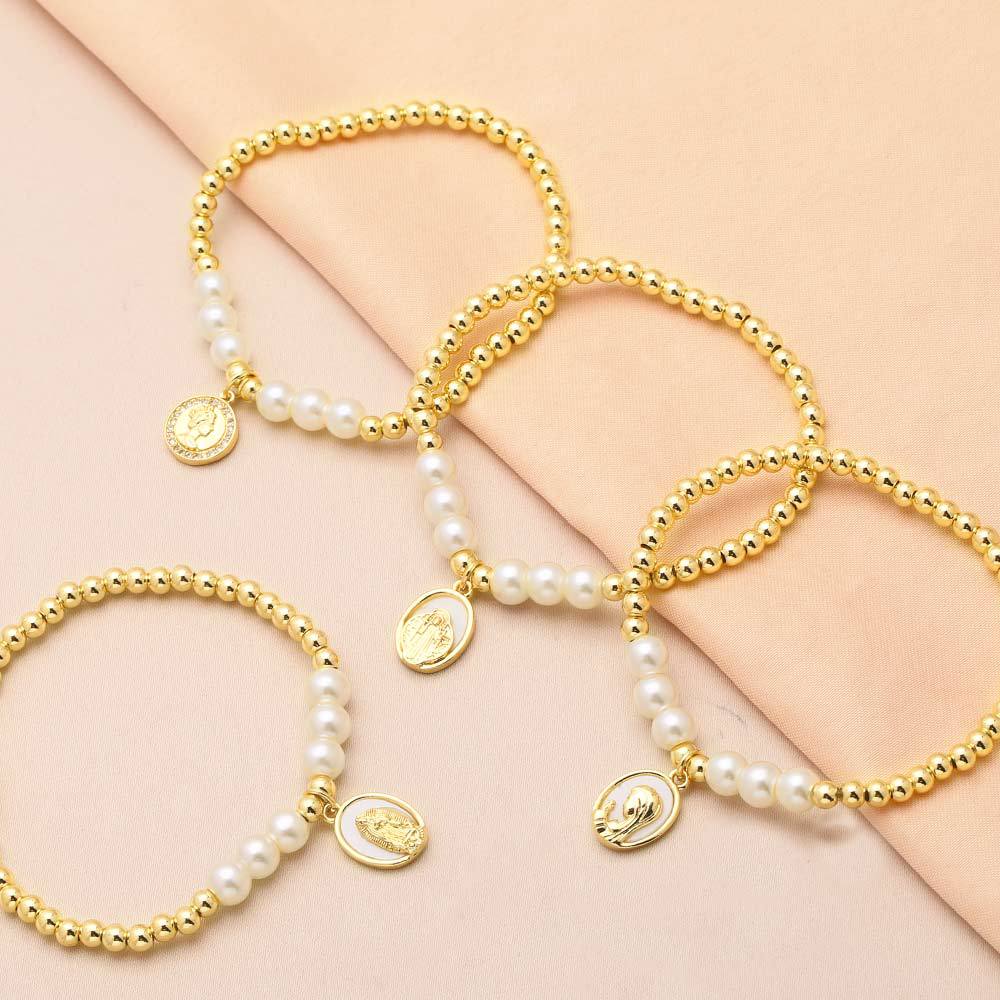 AS jewelry European and American shell pearl Madonna bracelet female copper plated 18k gold hand jewelry bracelet brb97