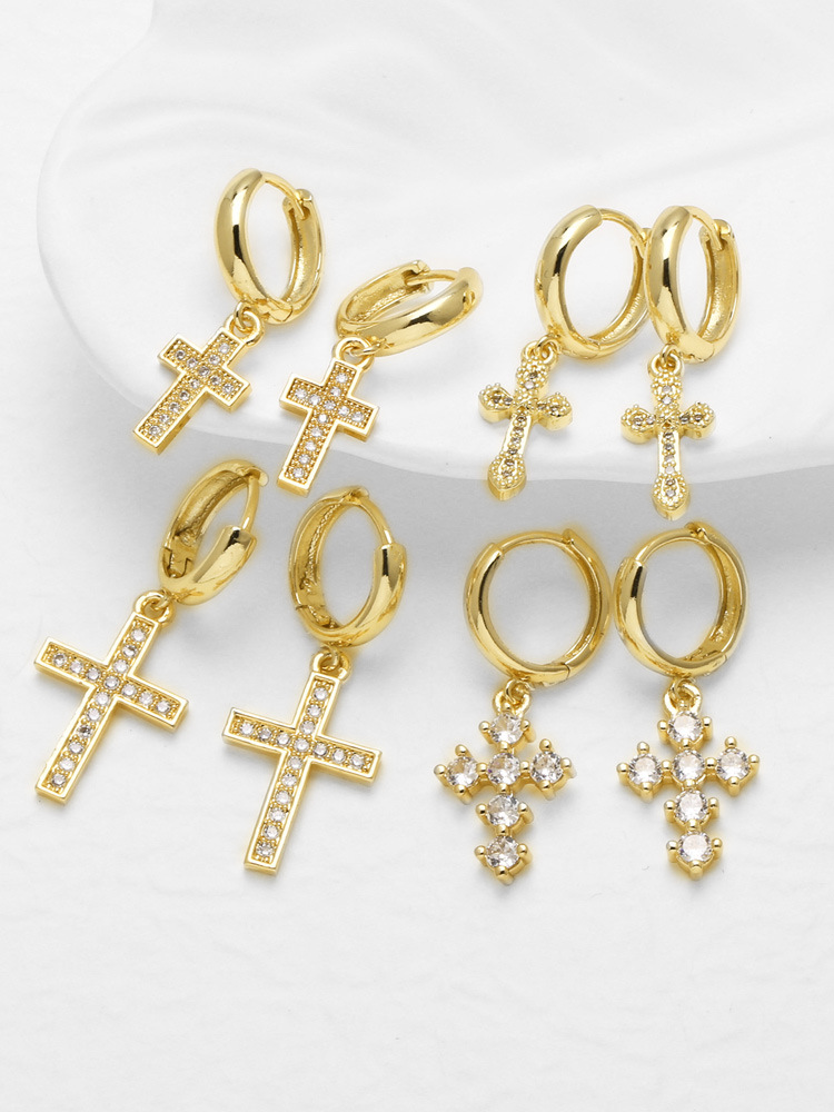 AS jewelry European and American simple fashion retro cross pendant gold-plated earrings earrings ear buckle erv21