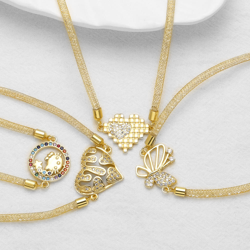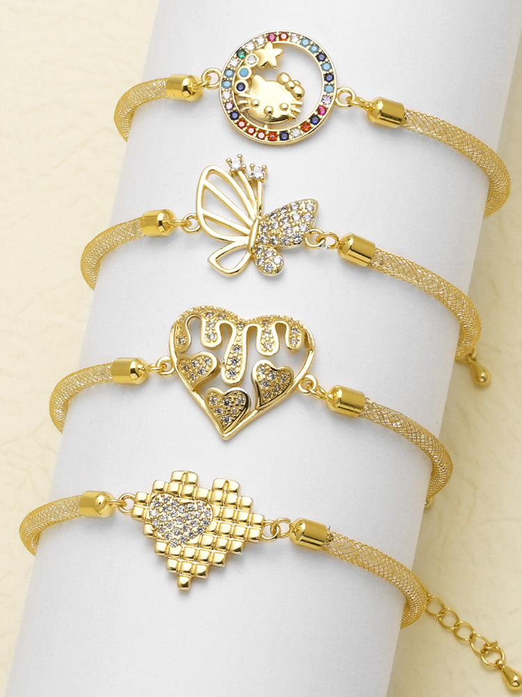 AS jewelry European and American simple high-end butterfly love zircon copper plated 18k gold hand jewelry bracelet female brn13