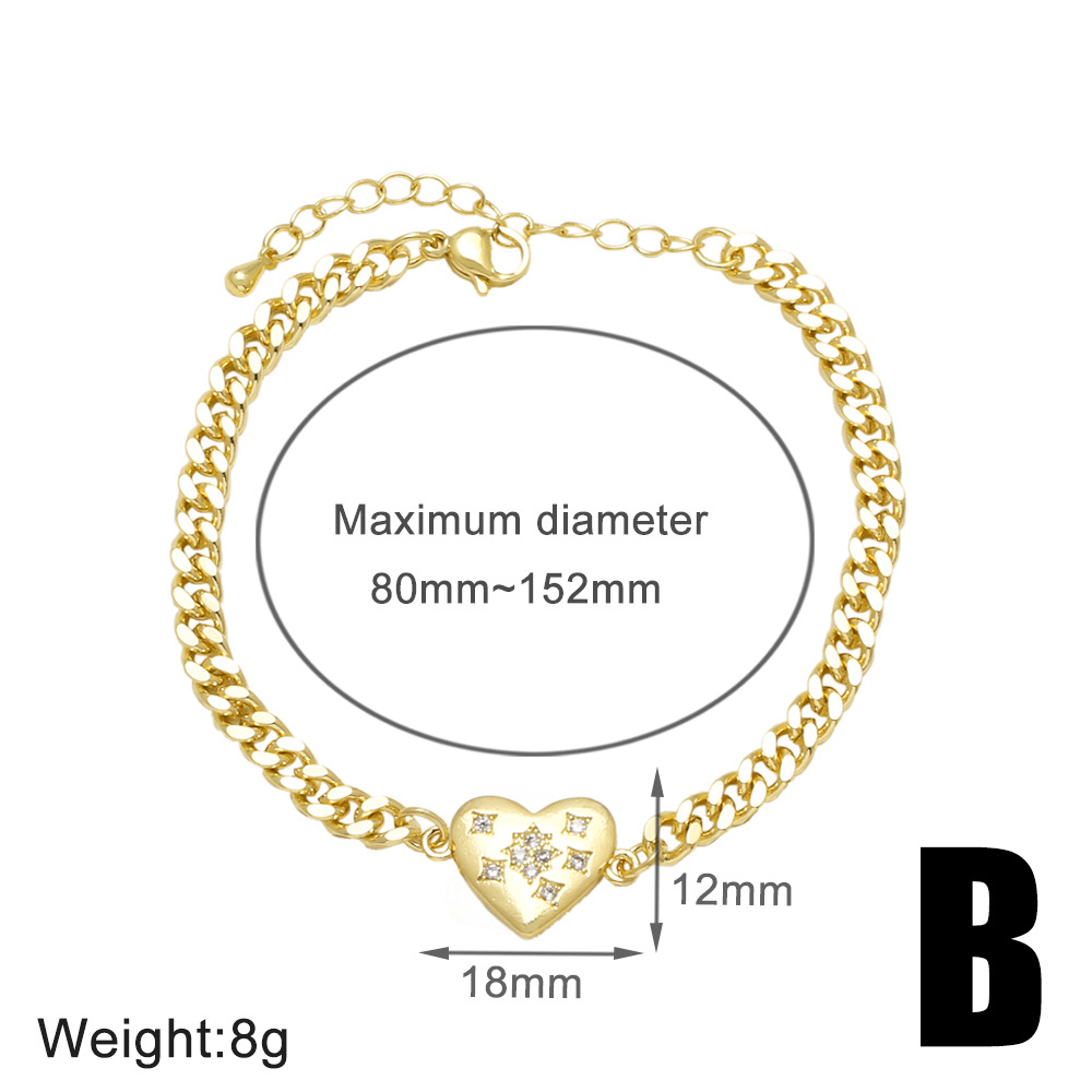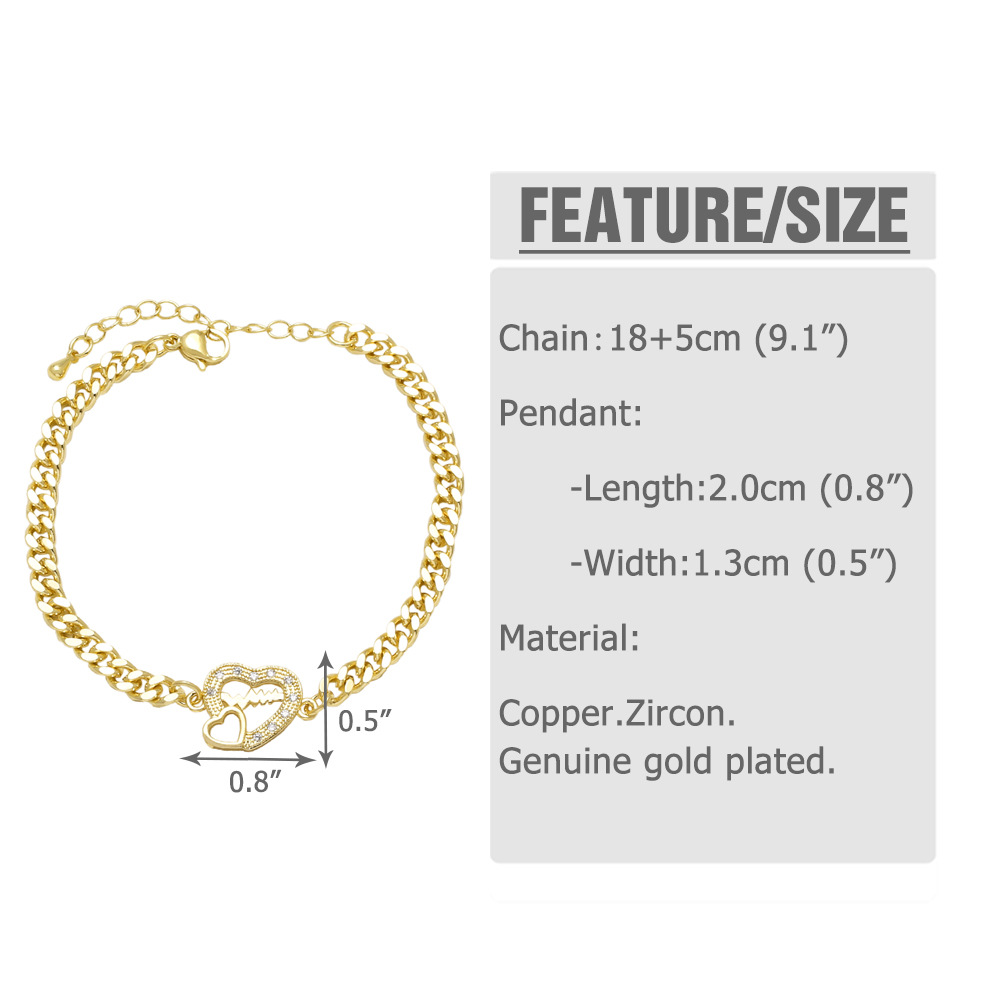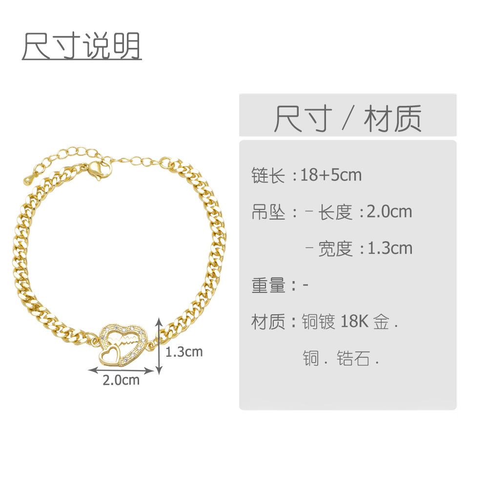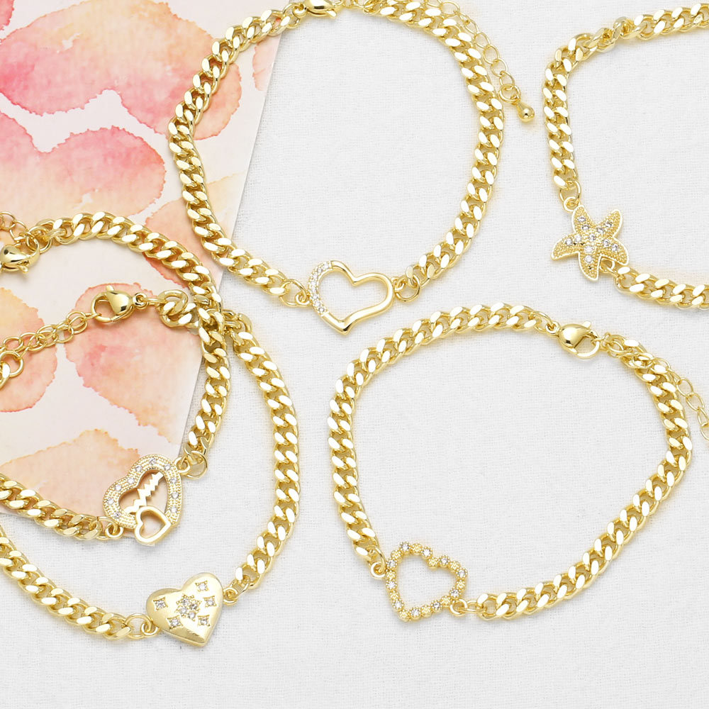 AS jewelry European and American simple new love heart-shaped pendant copper plated 18k gold Cuban chain bracelet brb06