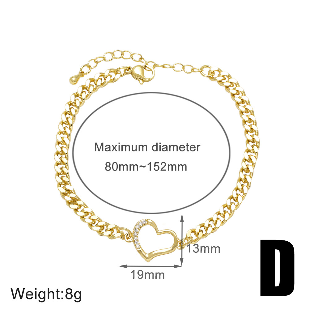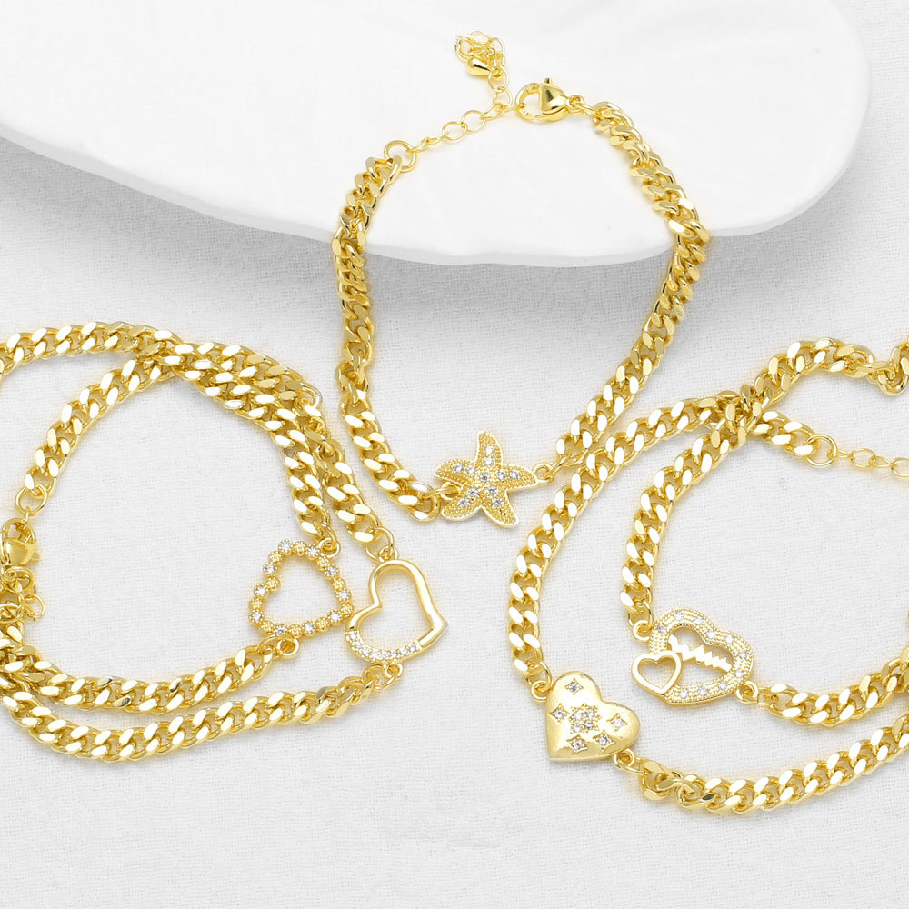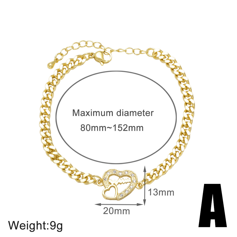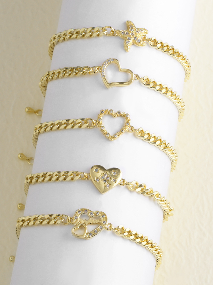 AS jewelry European and American simple new love heart-shaped pendant copper plated 18k gold Cuban chain bracelet brb06