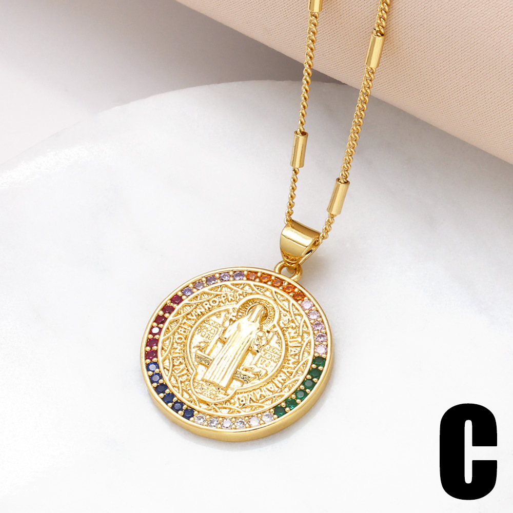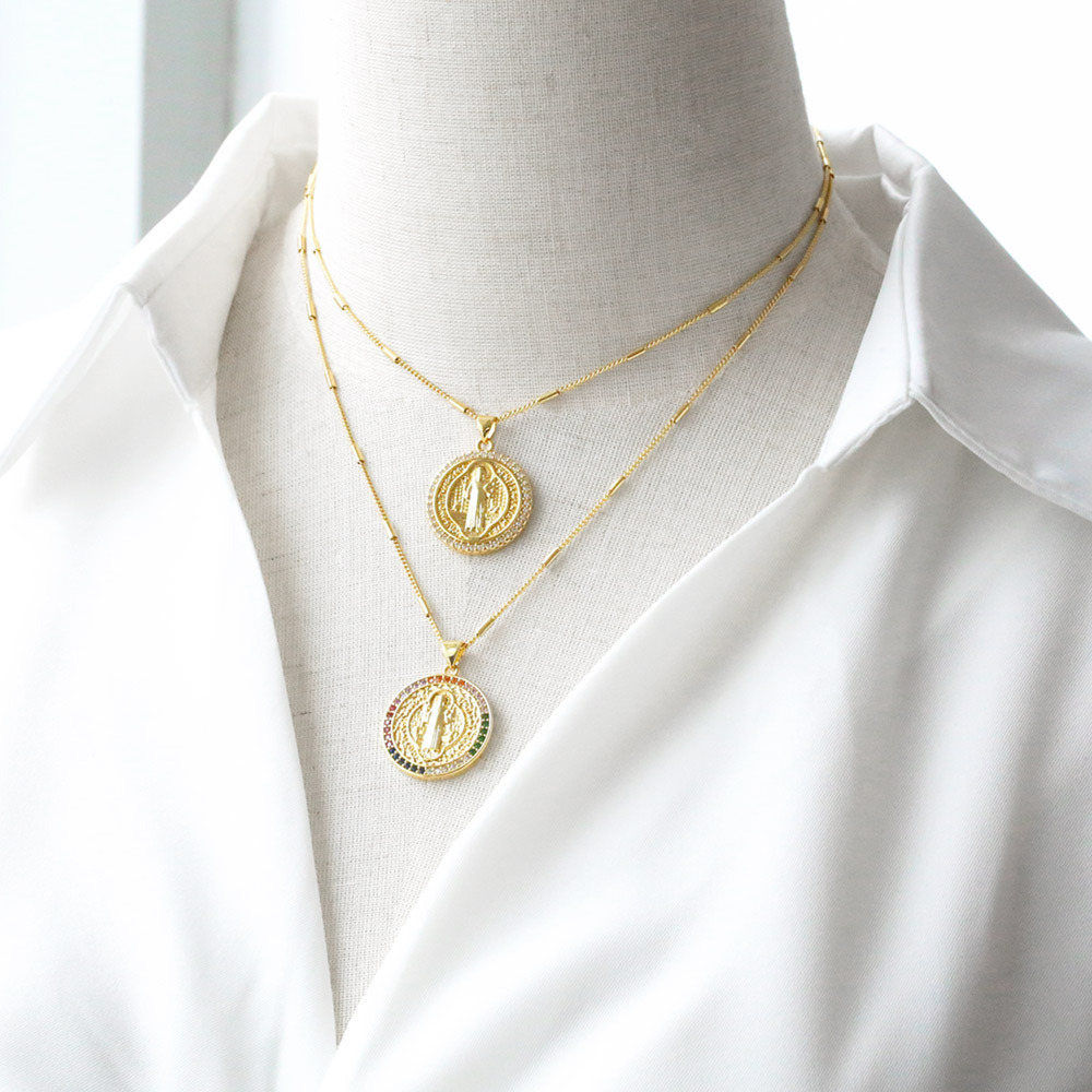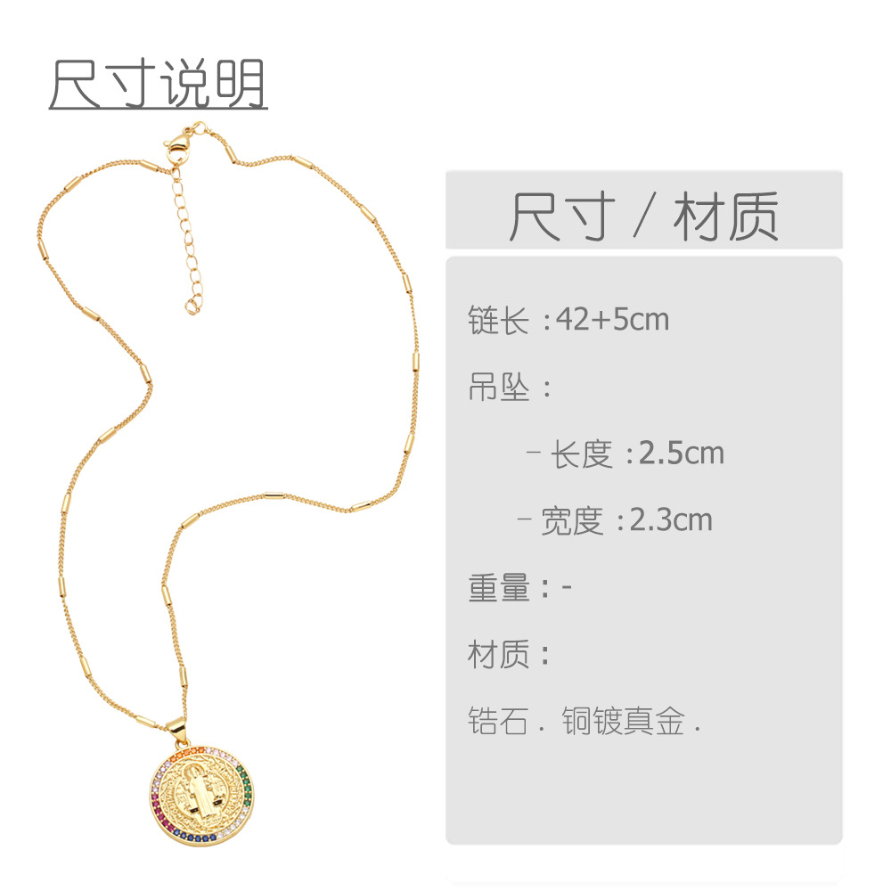 AS jewelry European and American source Virgin Mary necklace retro gold-plated color zircon clavicle chain nkz46