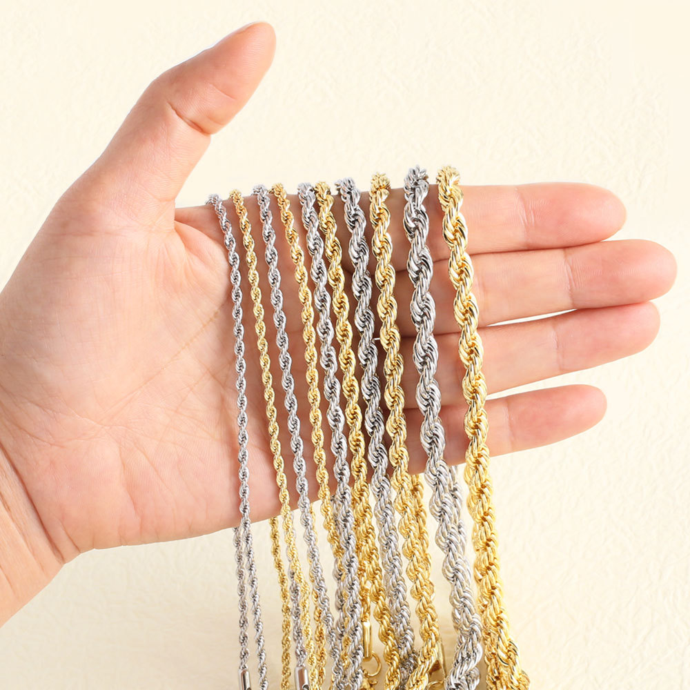 AS jewelry European and American stainless steel twist chain accessories necklace 18k gold plated men and women necklace cana234