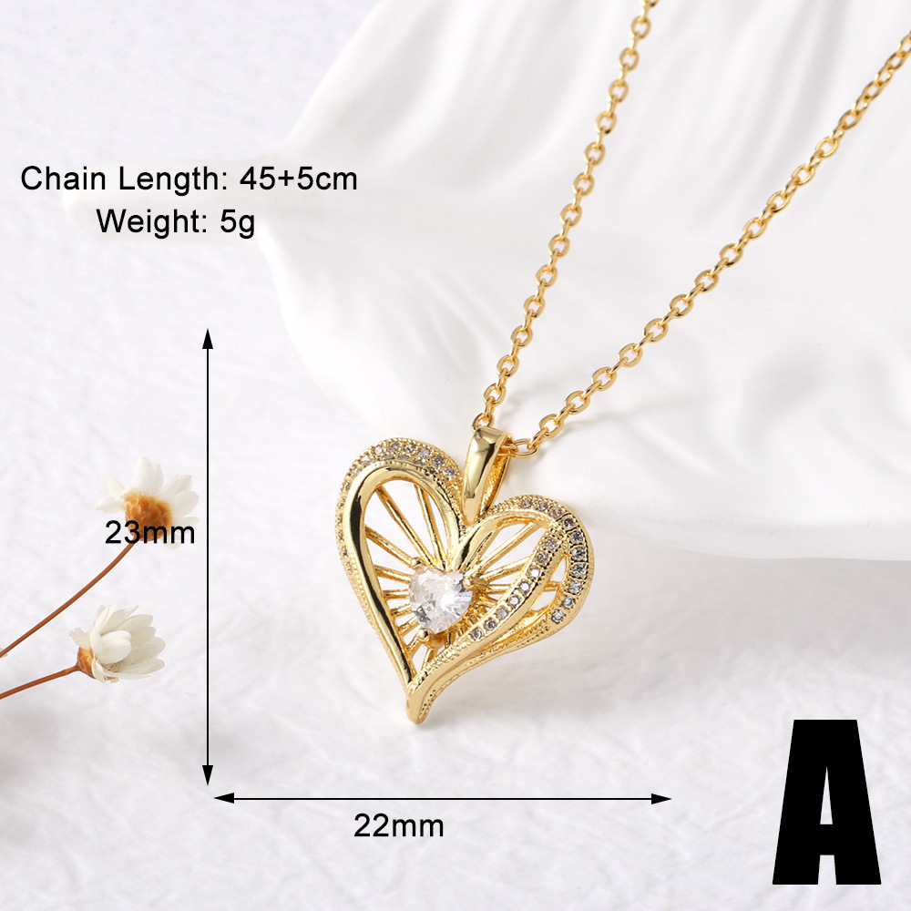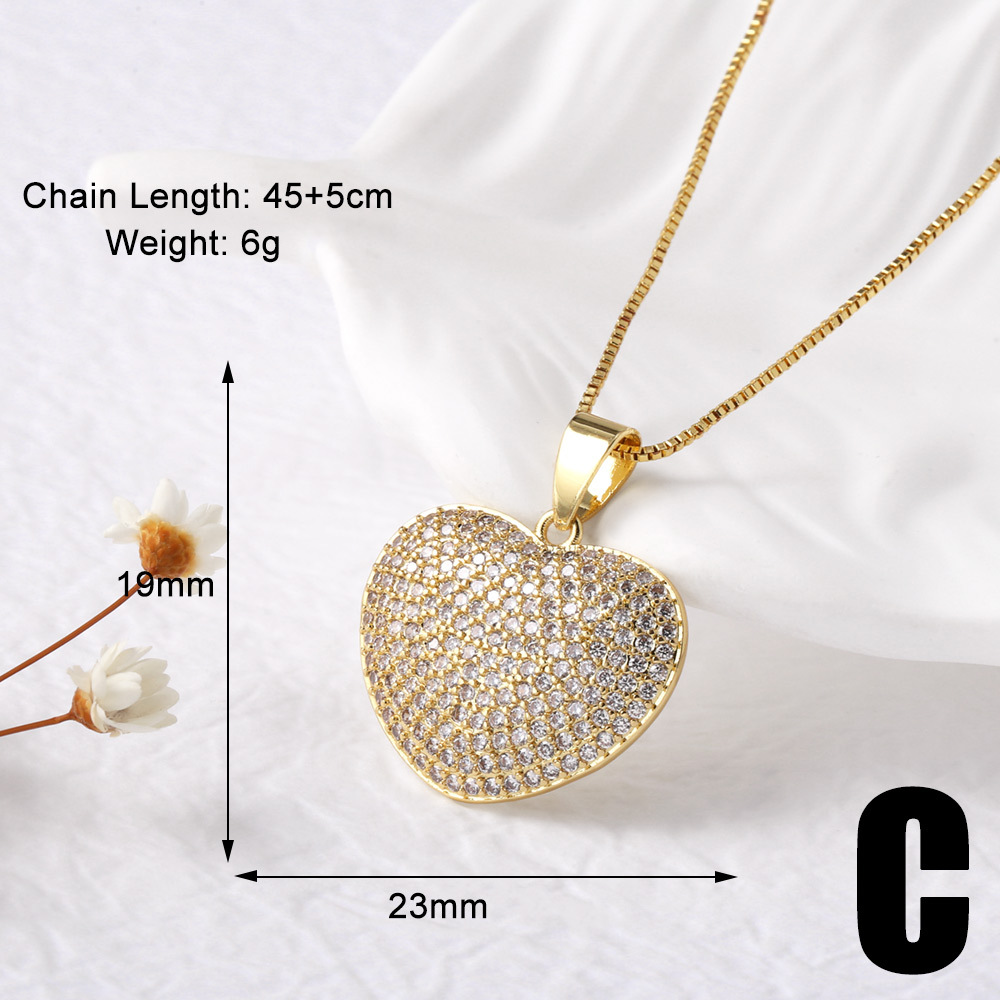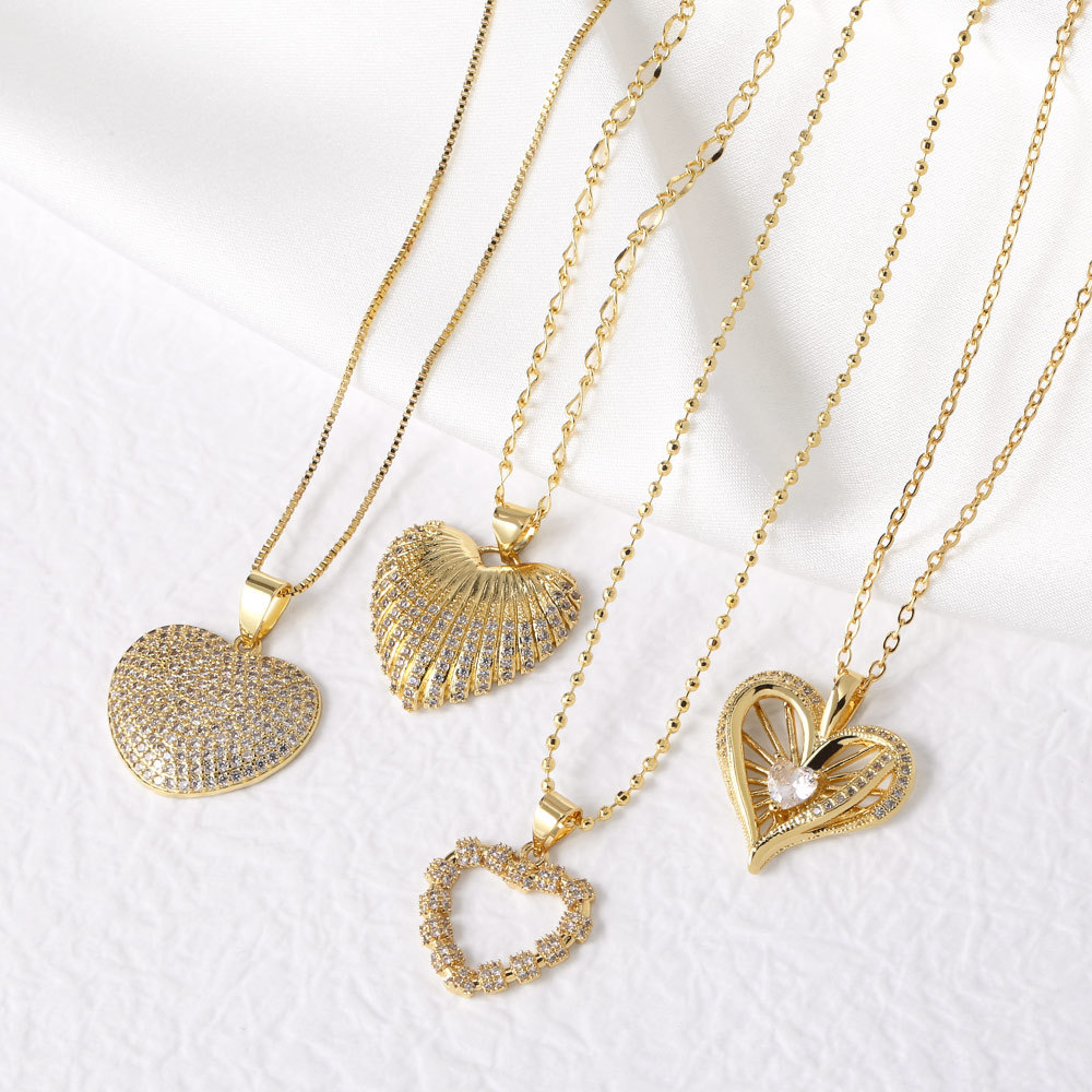AS jewelry European and American style full zircon heart-shaped pendant necklace gold-plated peach heart clavicle chain nkn34