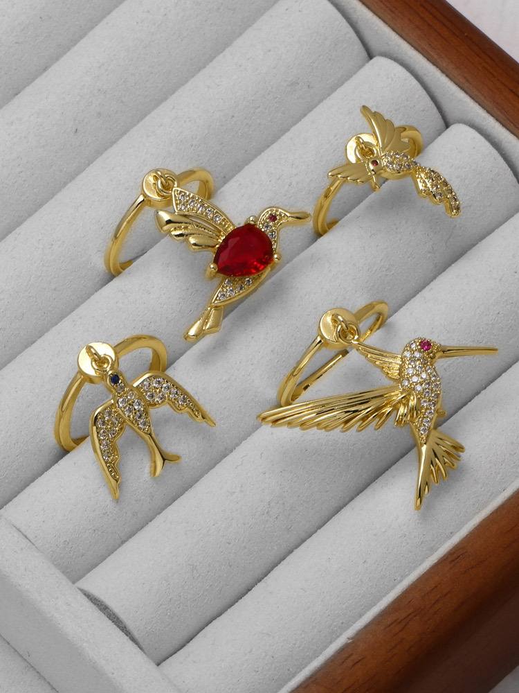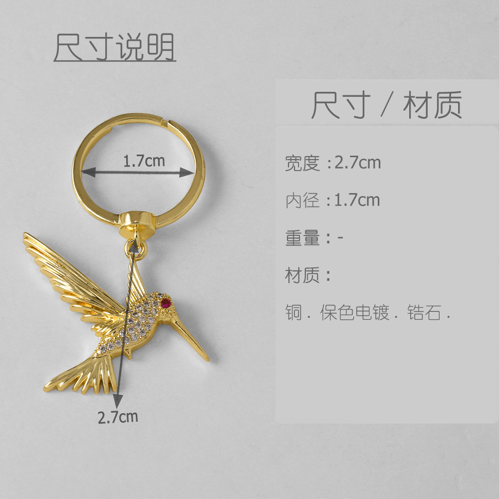 AS jewelry European and American temperament micro-inlaid zircon bird open ring female copper plated 18k gold ring rim38