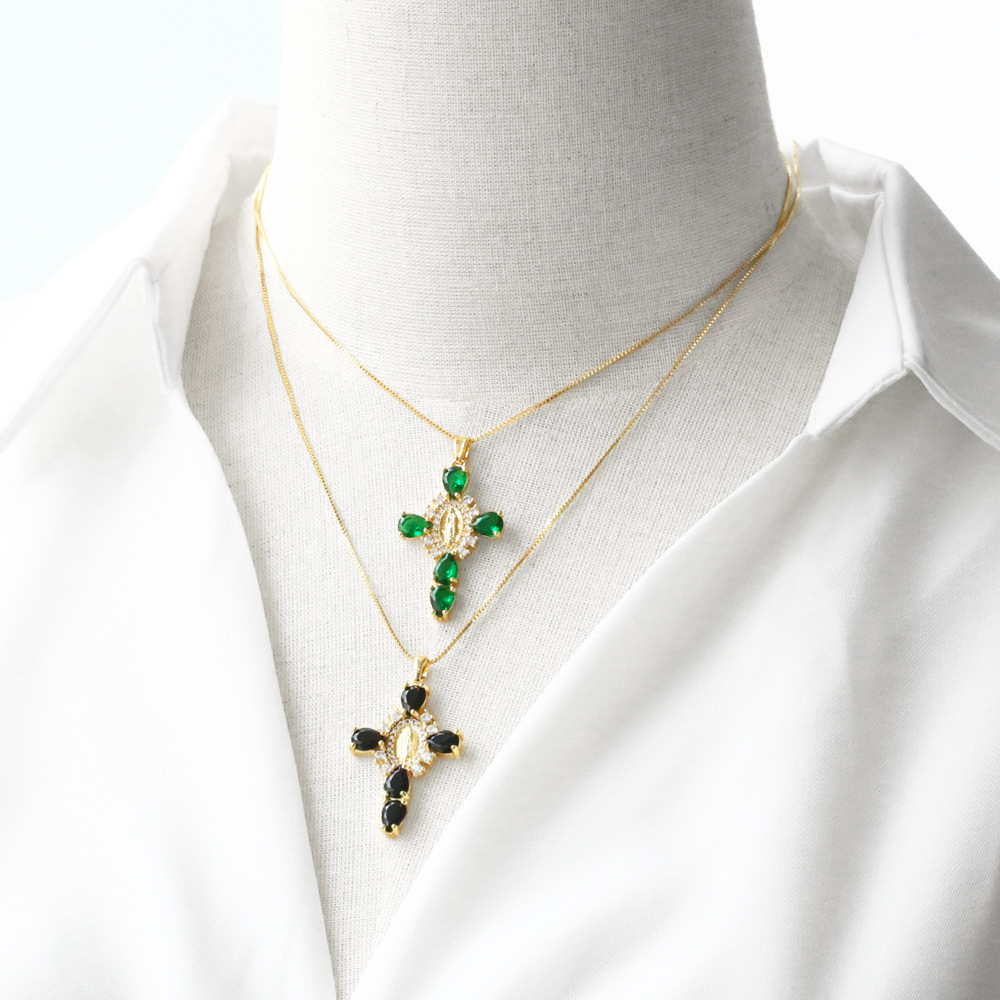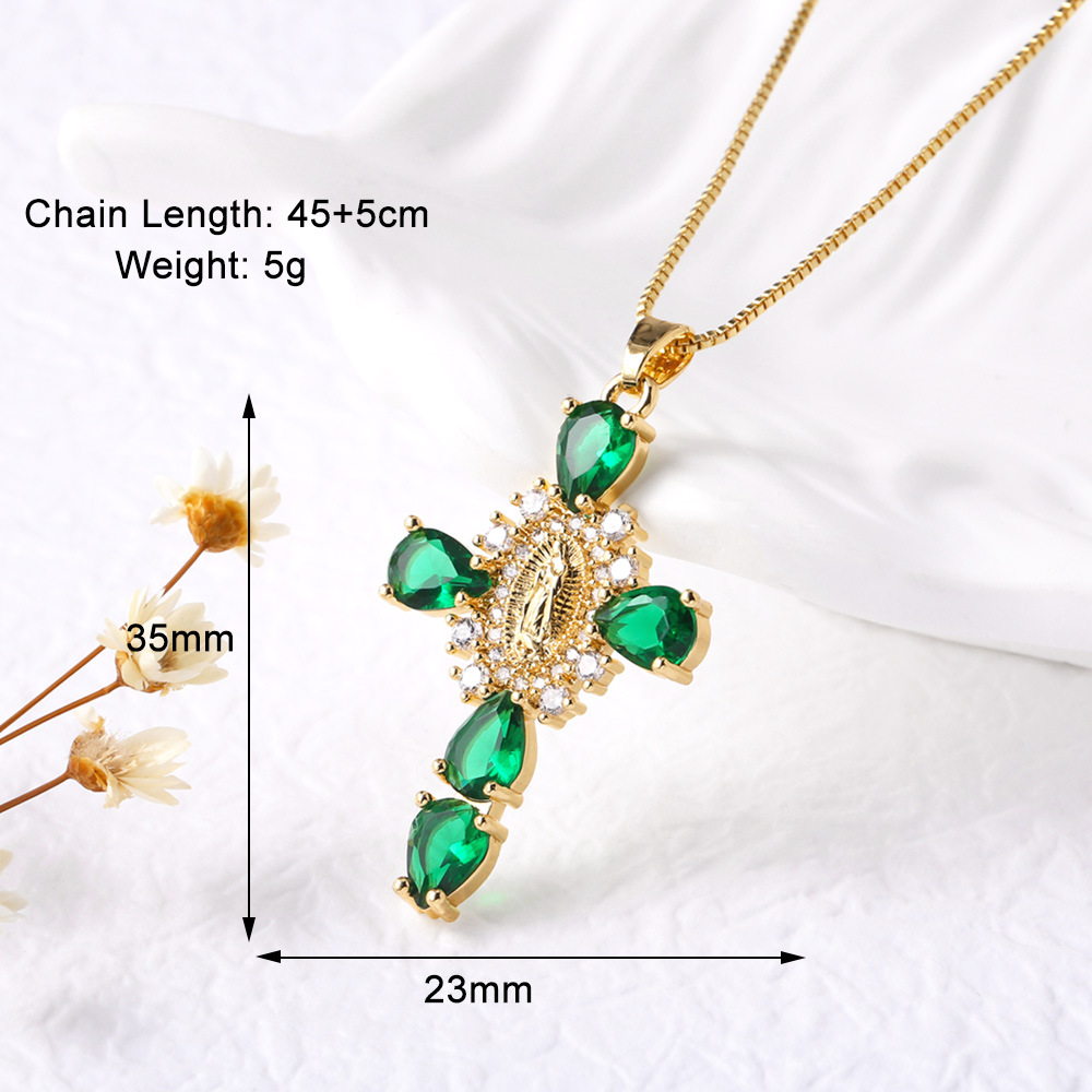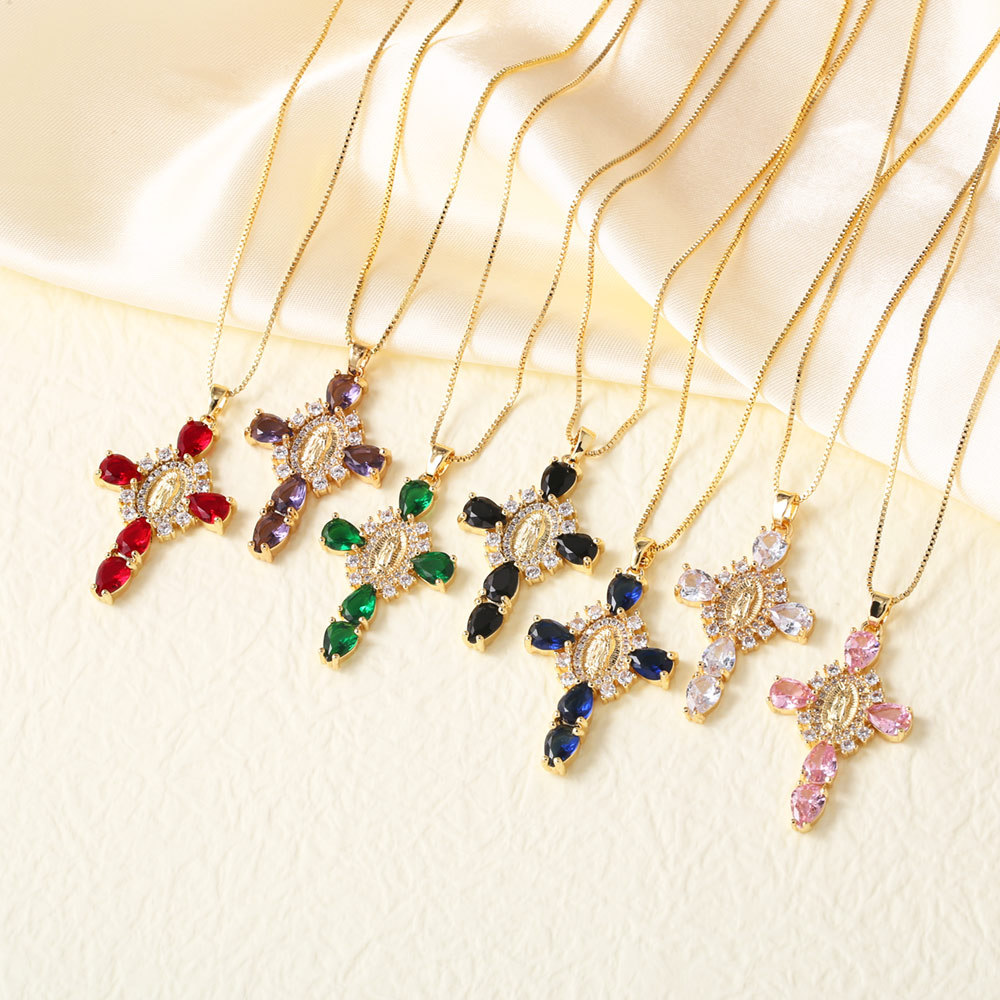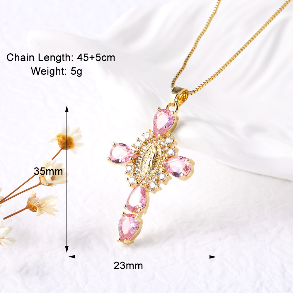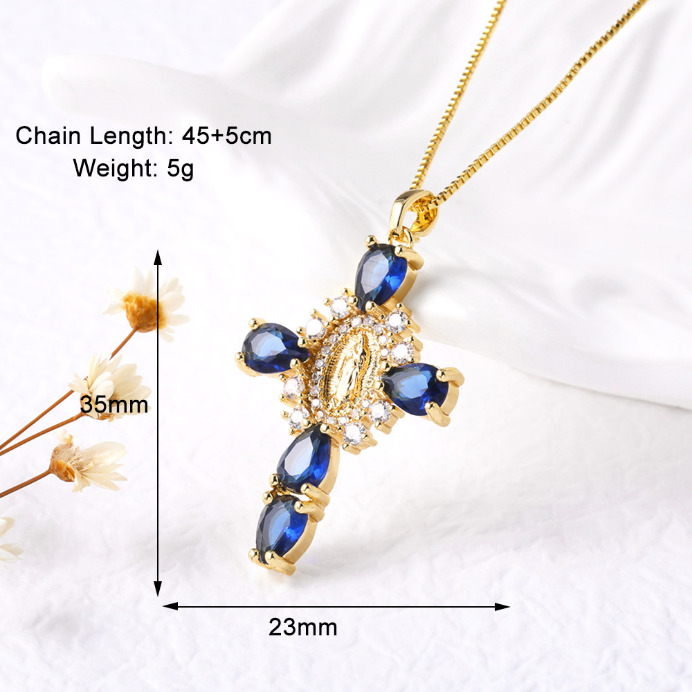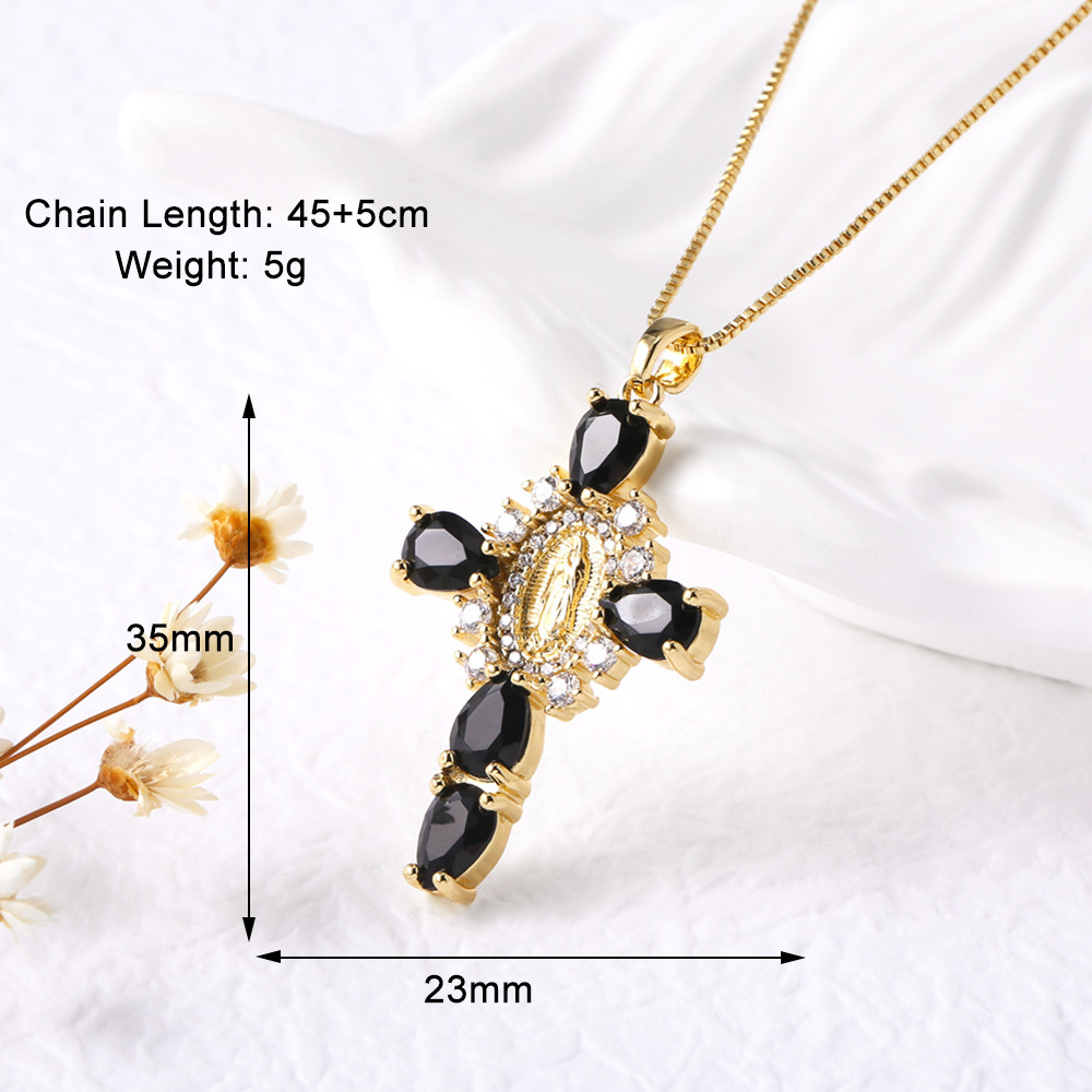 AS jewelry European and American Virgin Mary cross pendant men and women's color zircon necklace nkb462
