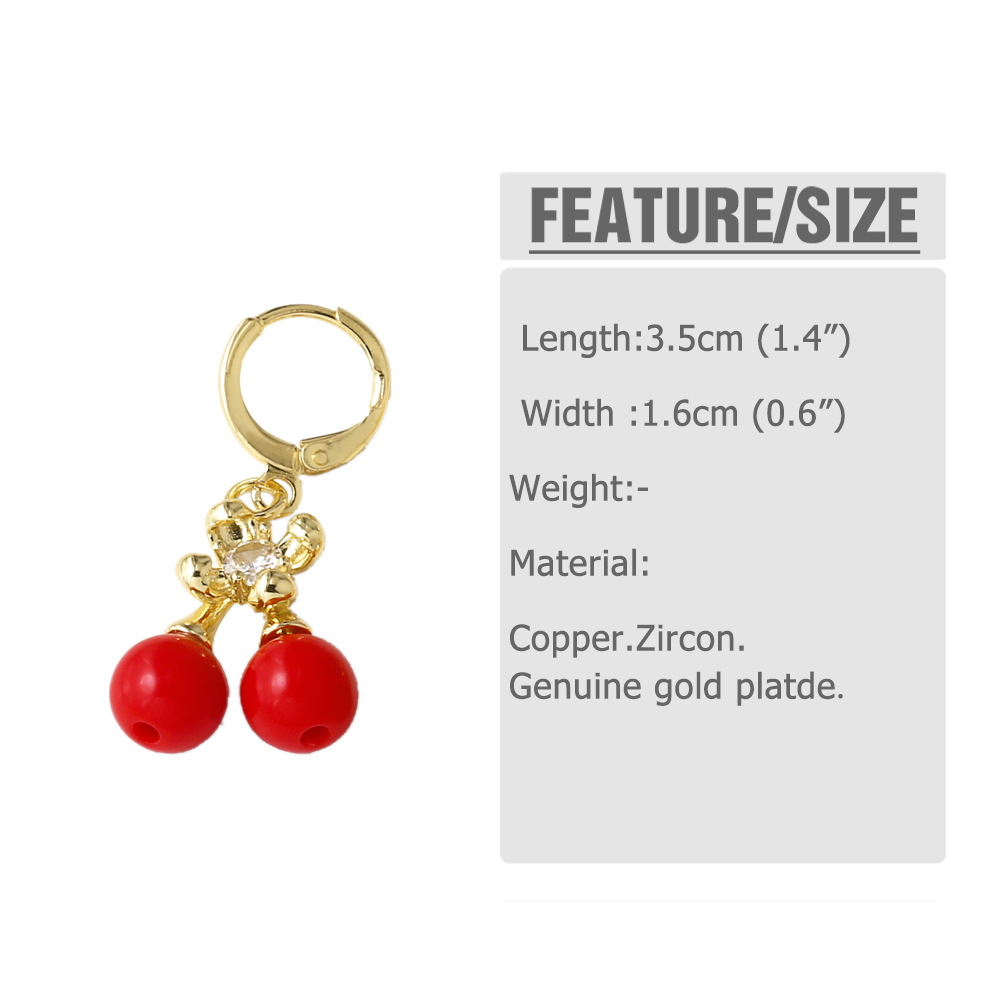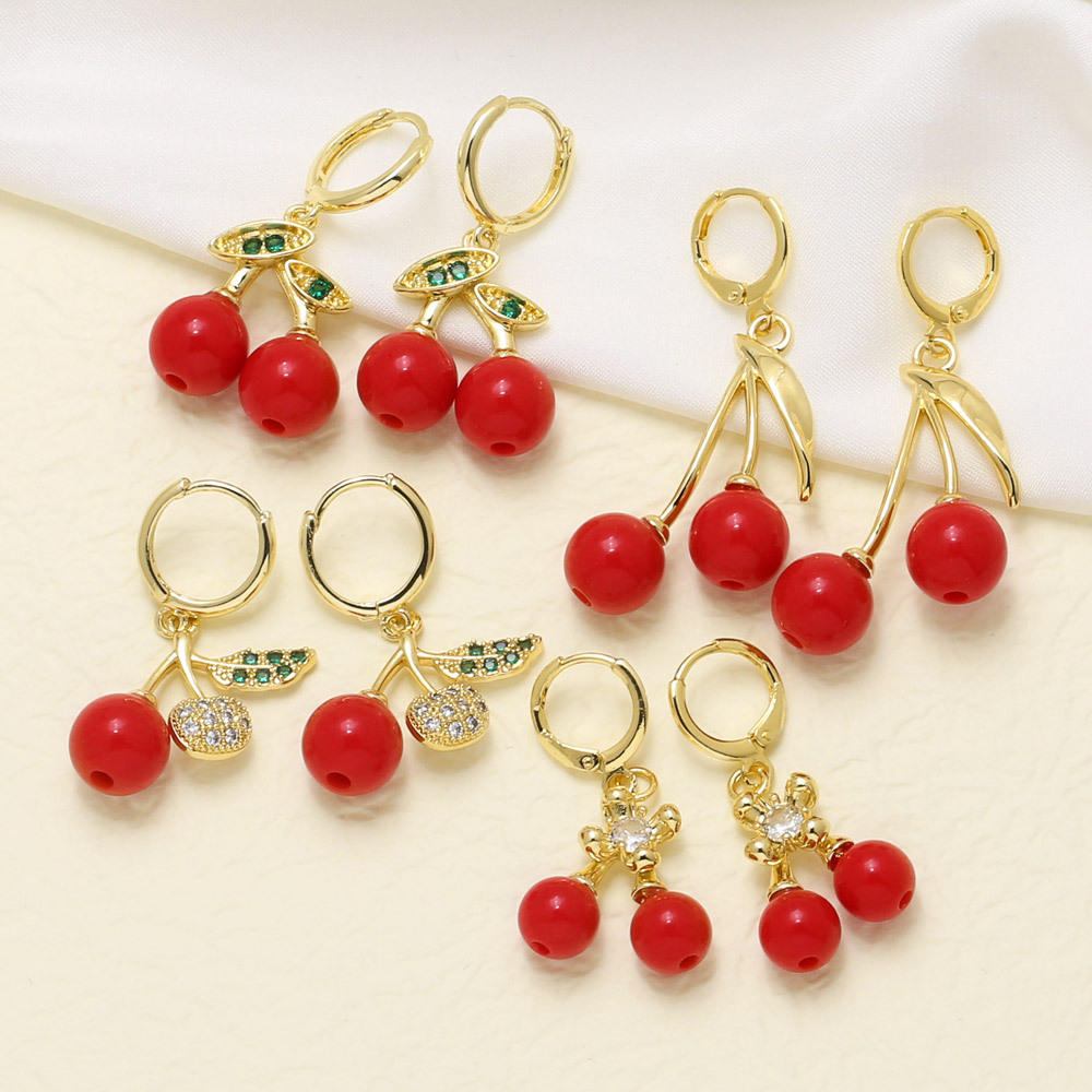 AS jewelry European and American new hot selling fruit cherry copper plated 18k gold earrings earrings female ers28 ring
