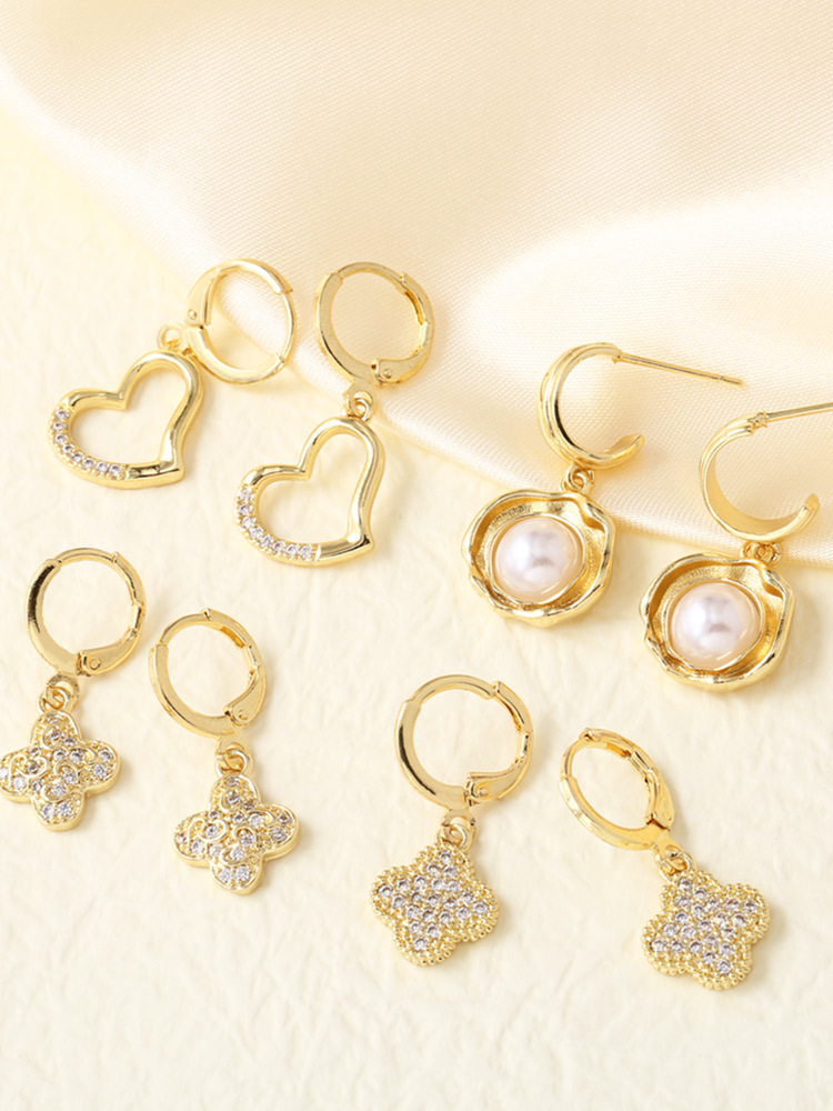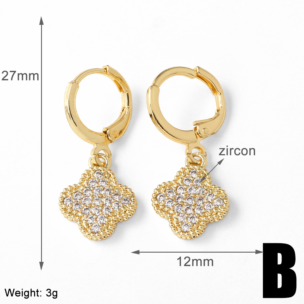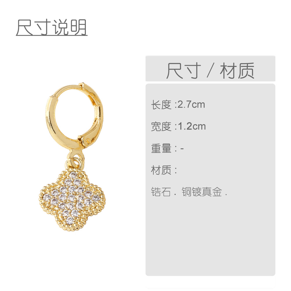 AS jewelry full zircon copper plated real gold four-leaf clover love pearl earrings earrings female erq95