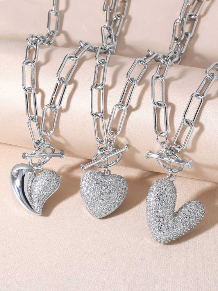 AS jewelry full zircon love heart pendant necklace female gold-plated heart-shaped sweater chain nkp09