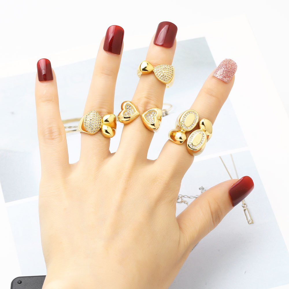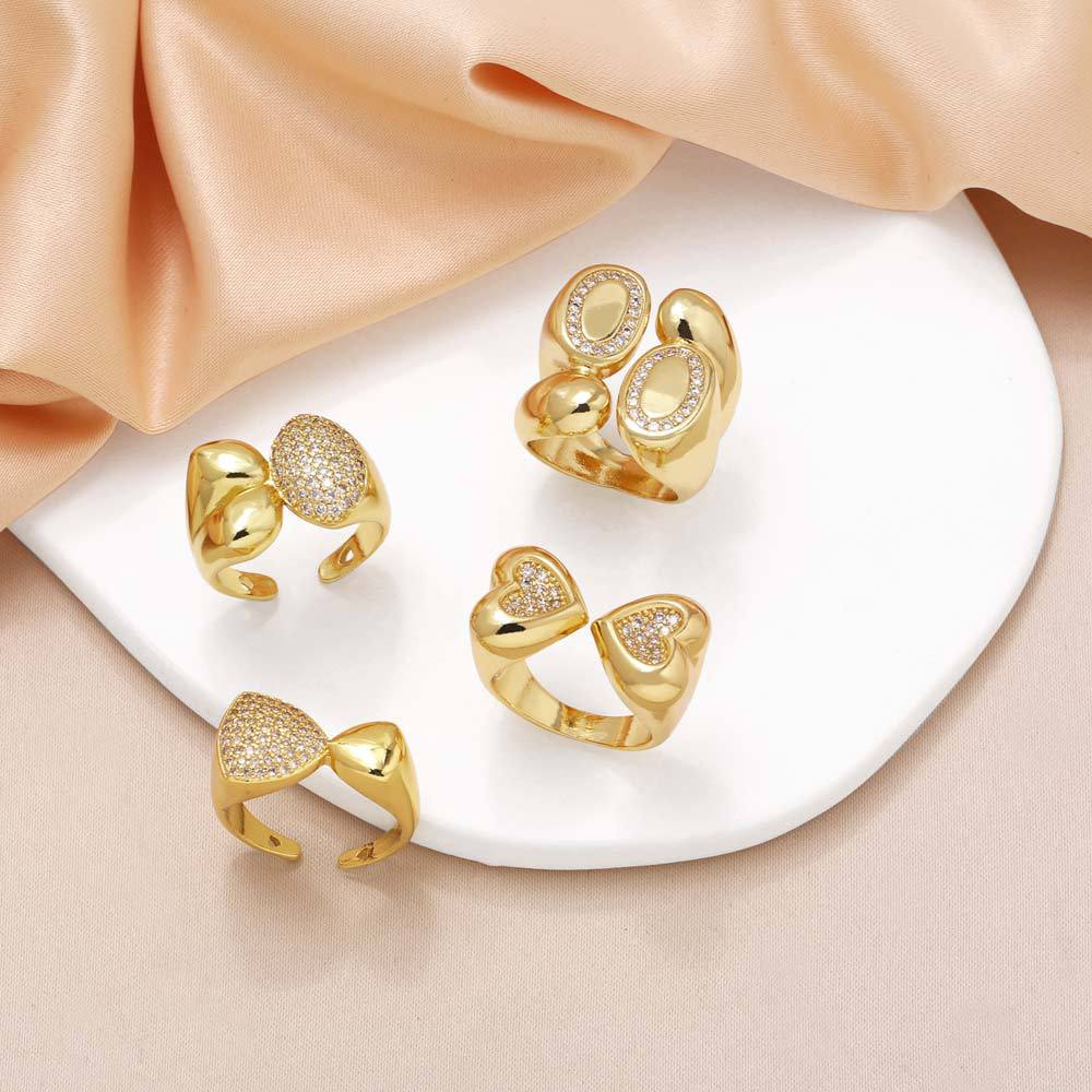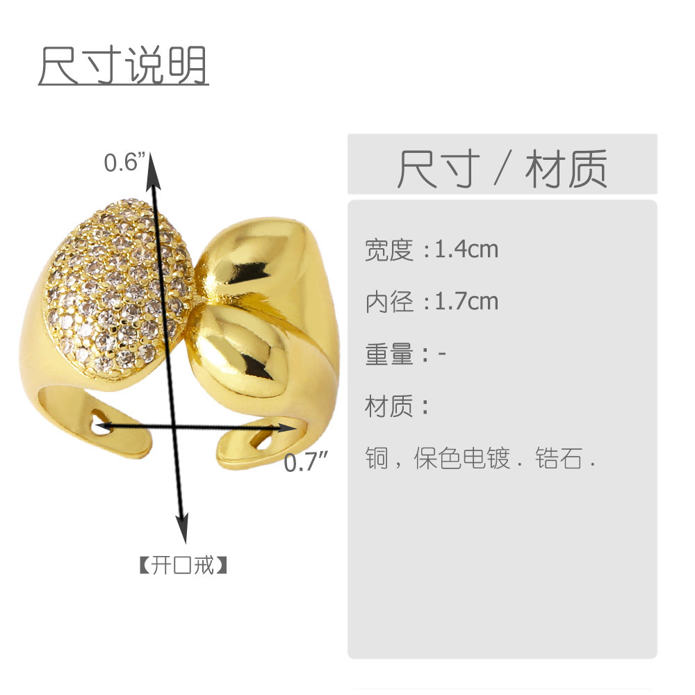 AS jewelry full zircon love ring female copper plated 18k gold open ring rih19