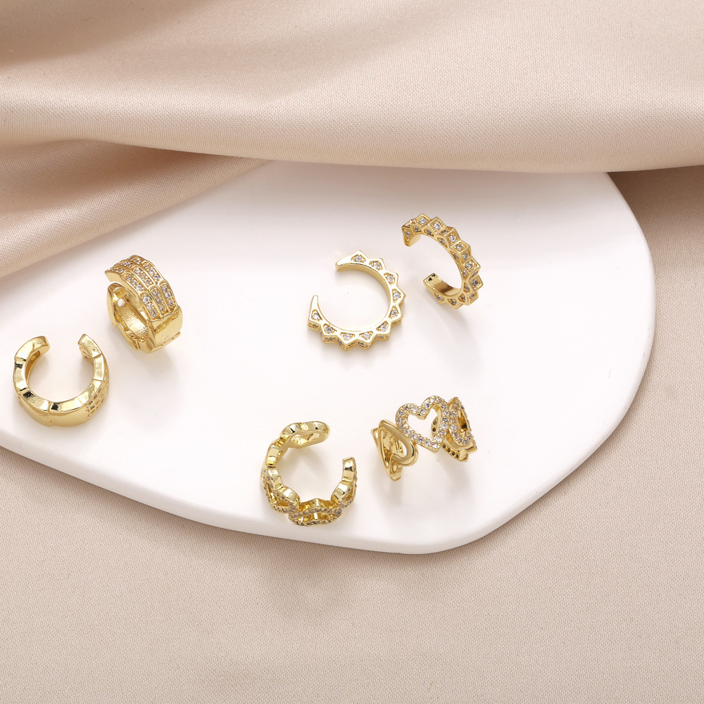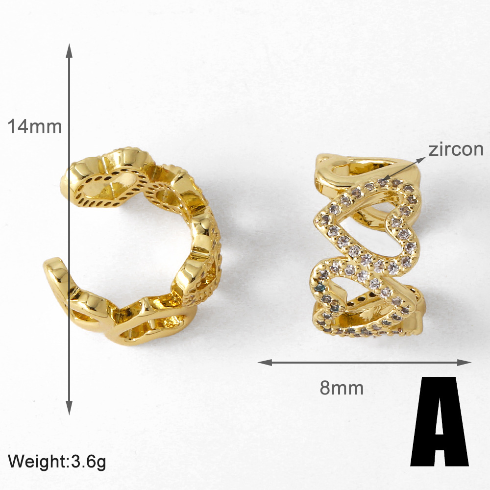 AS jewelry heart C-shaped ear bone clip copper plated real gold inlaid zircon earrings female earrings era063