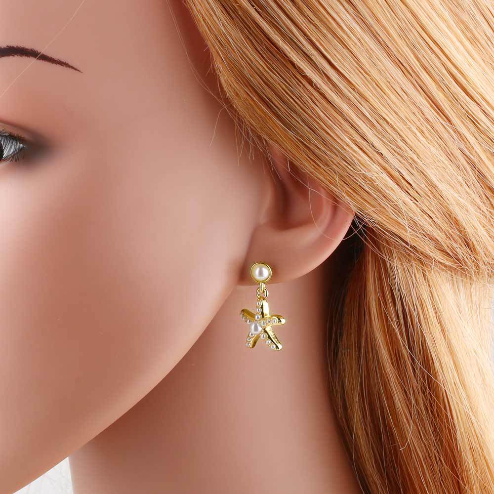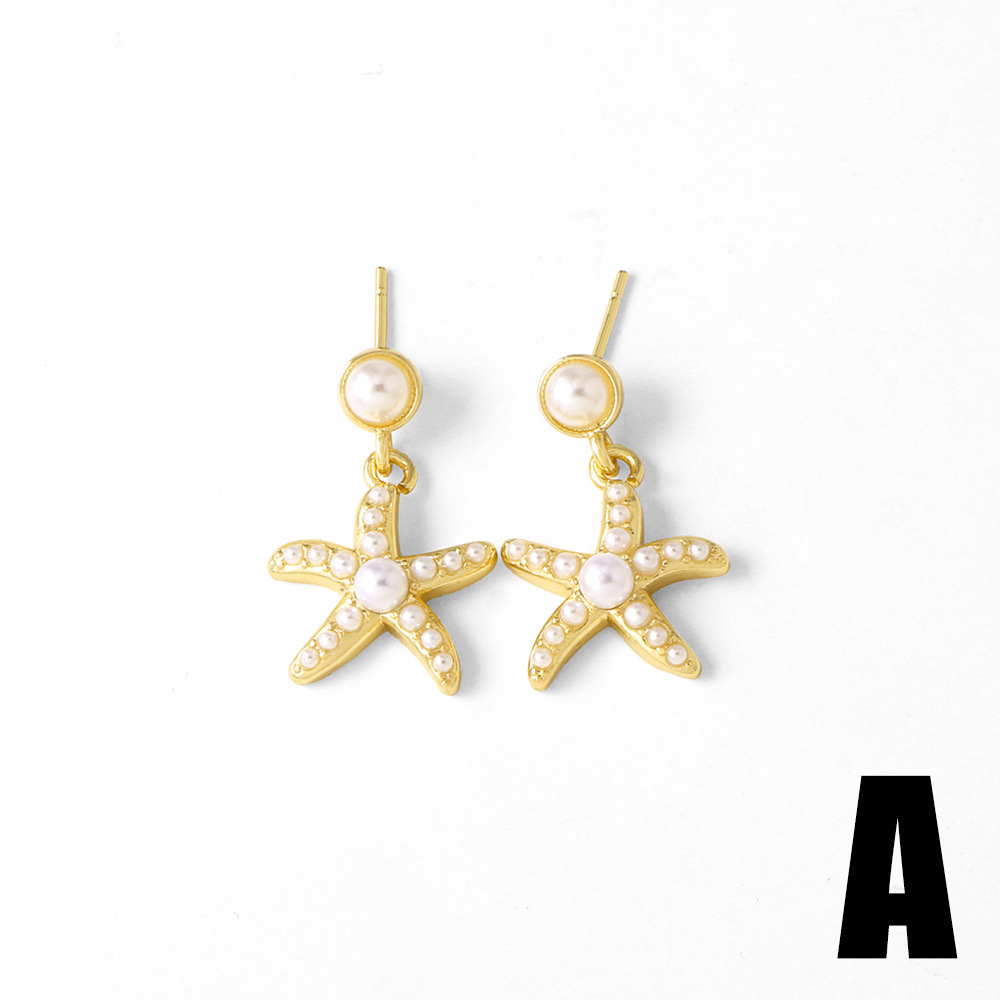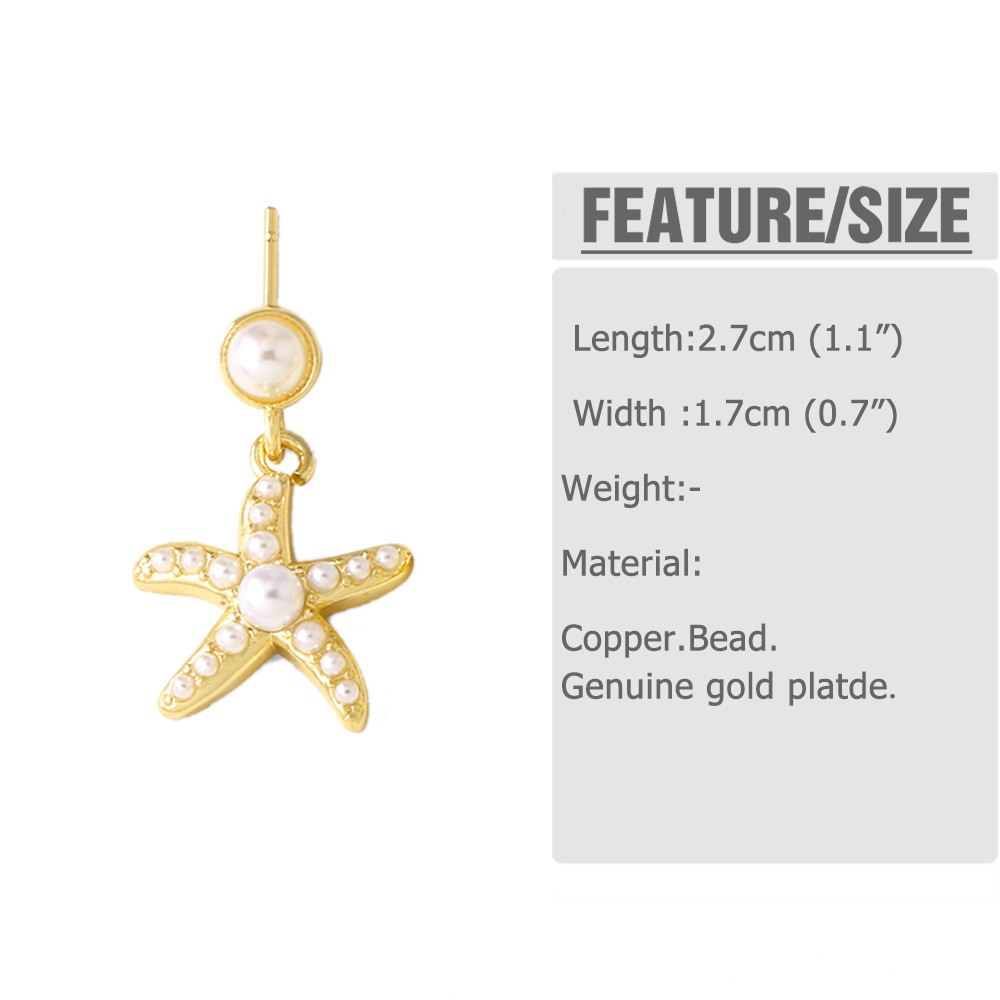 AS jewelry high-end pearl starfish heart copper plated real gold earrings earrings earrings era126