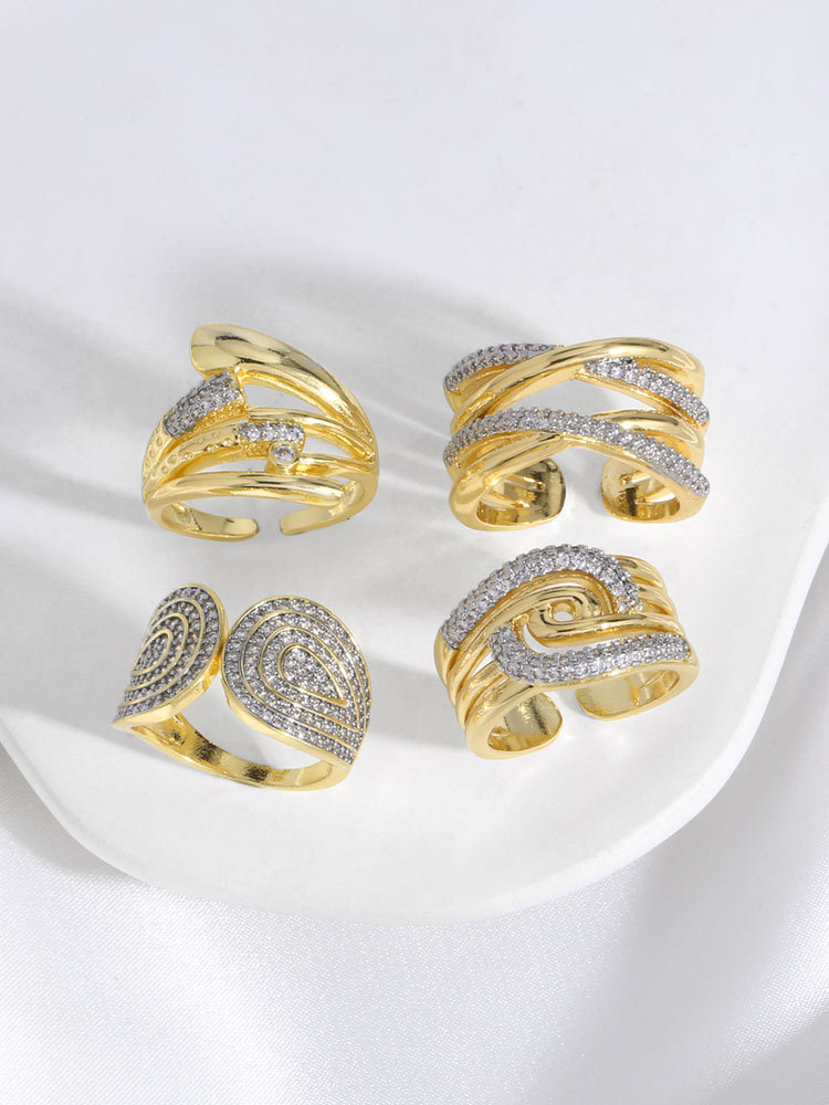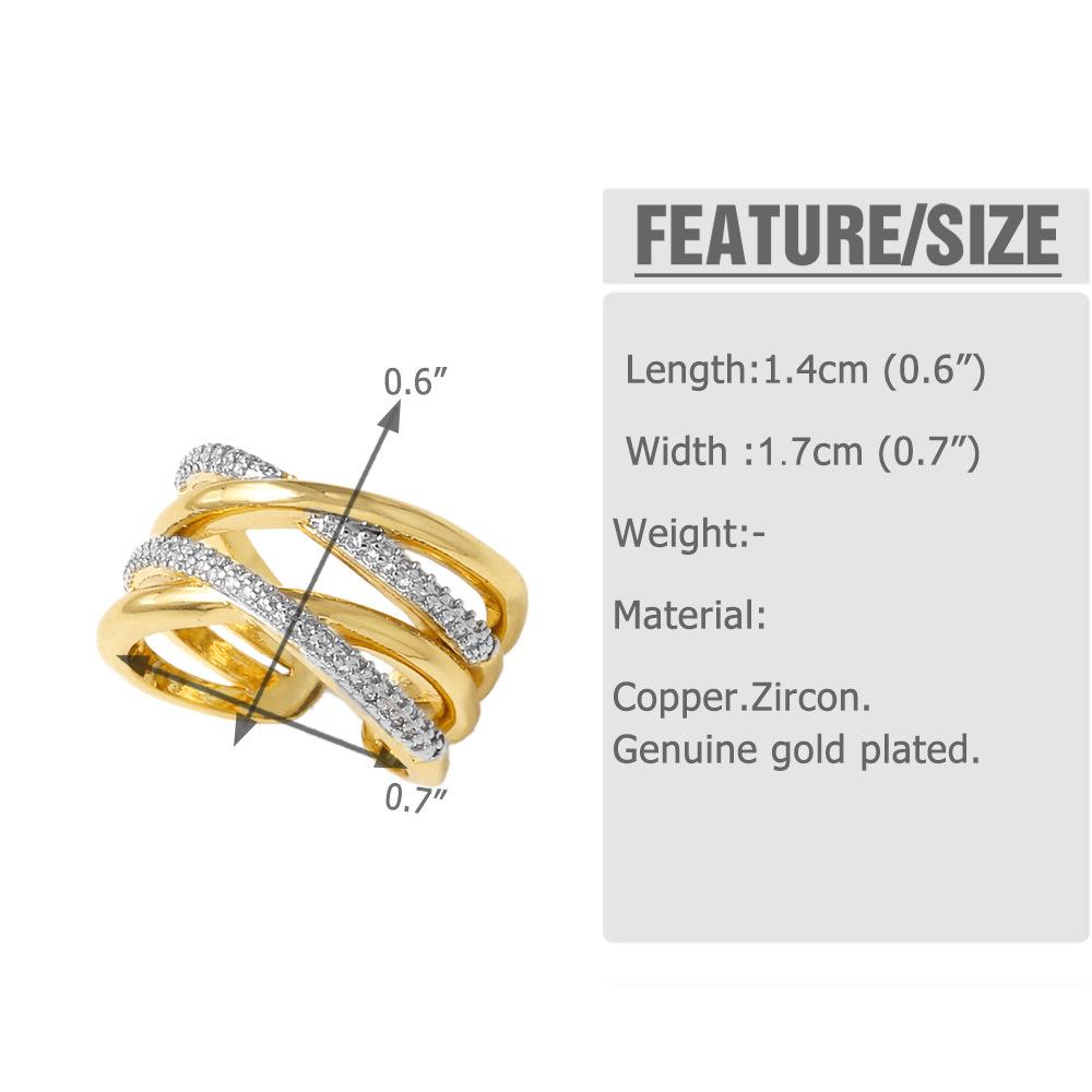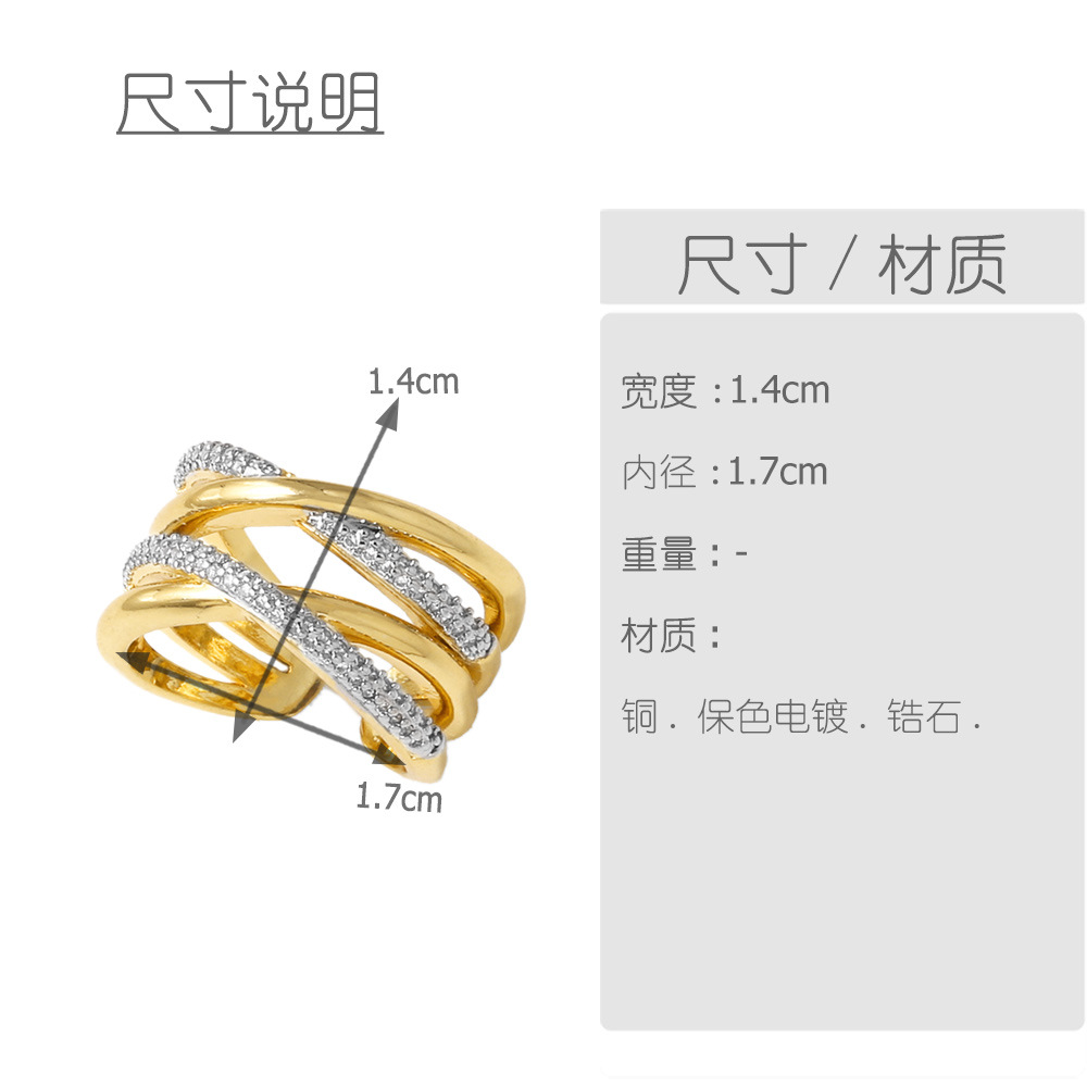 AS jewelry hot cross two-color irregular open ring female copper plated 18k gold hollow ring rir67