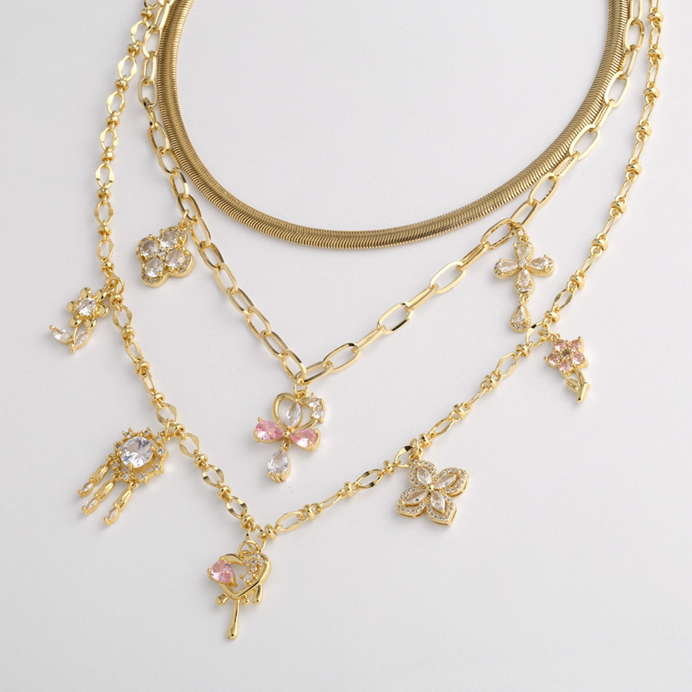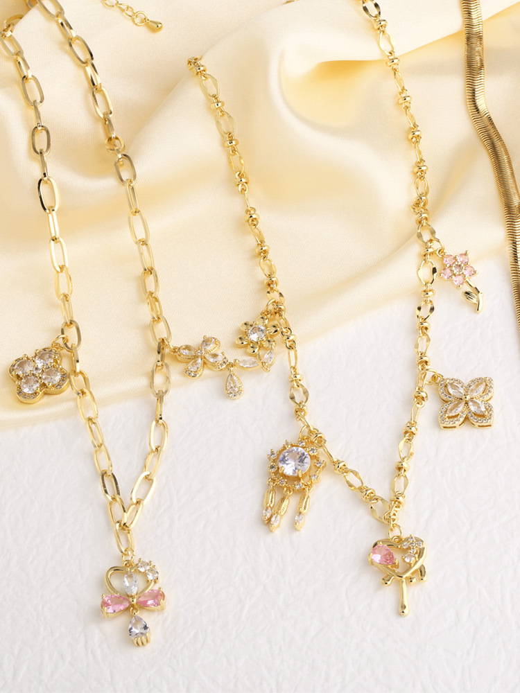 AS jewelry new hot selling pearl heart necklace copper plated real gold full zircon necklace clavicle chain nkb334