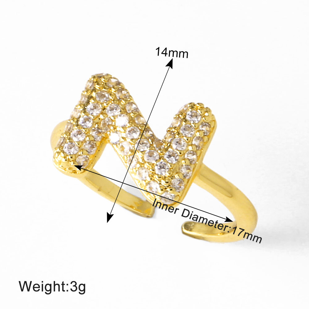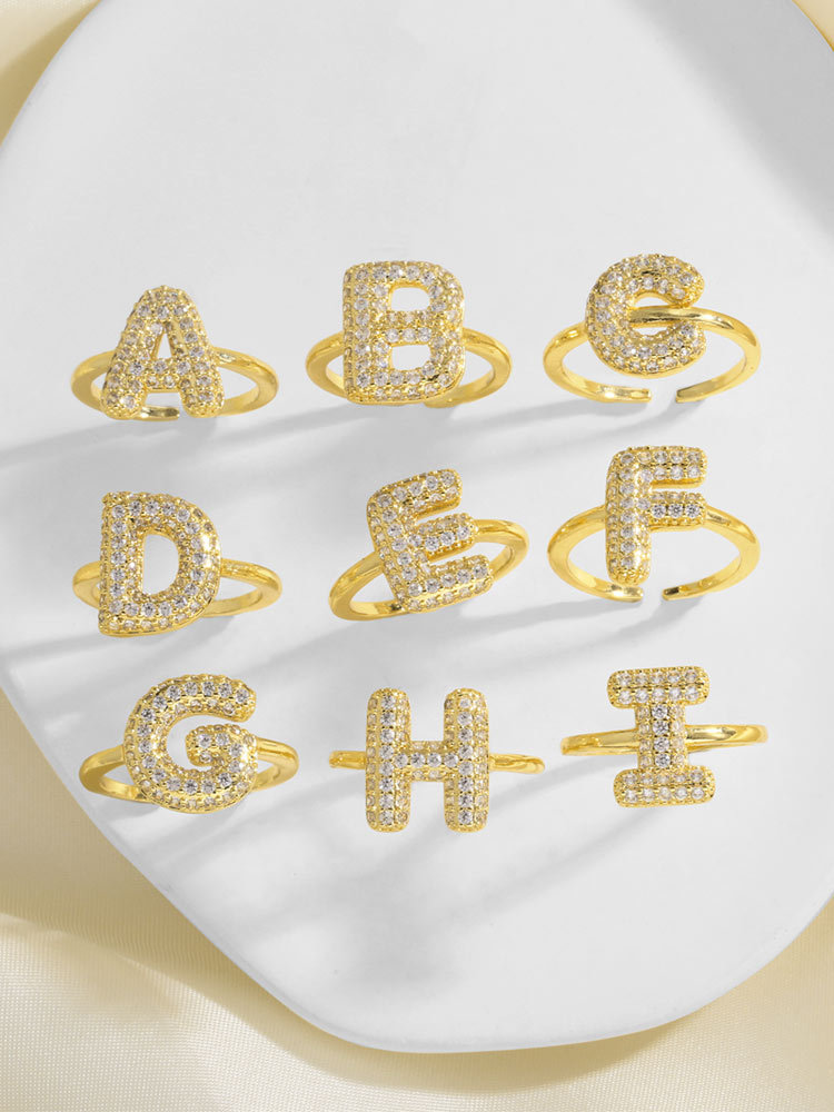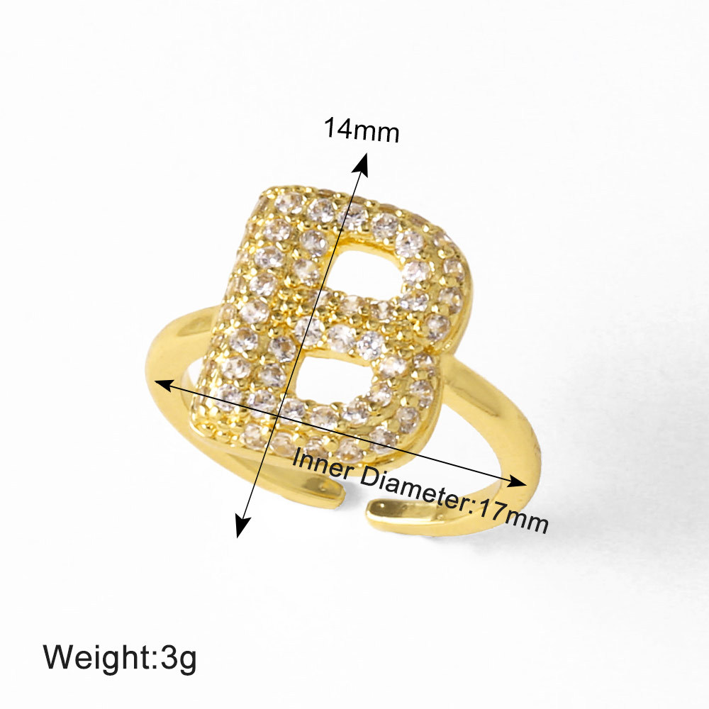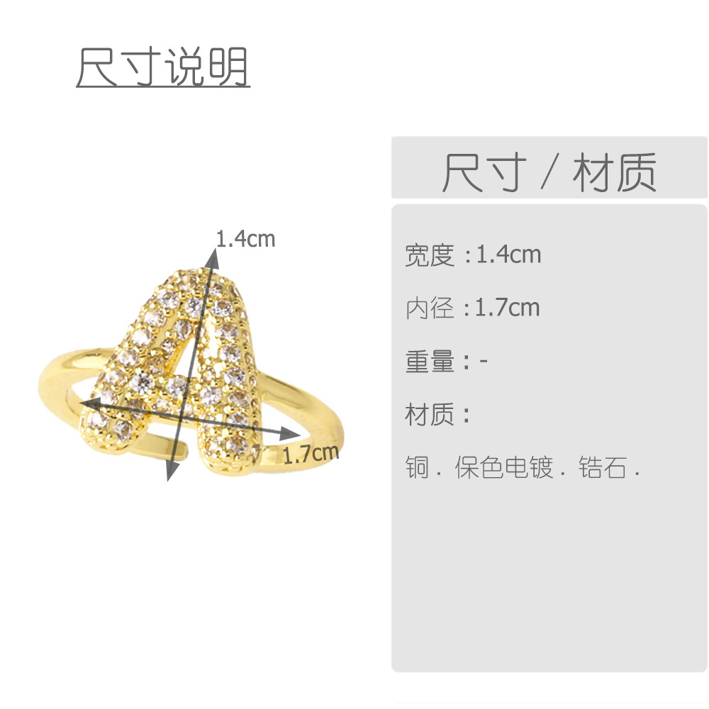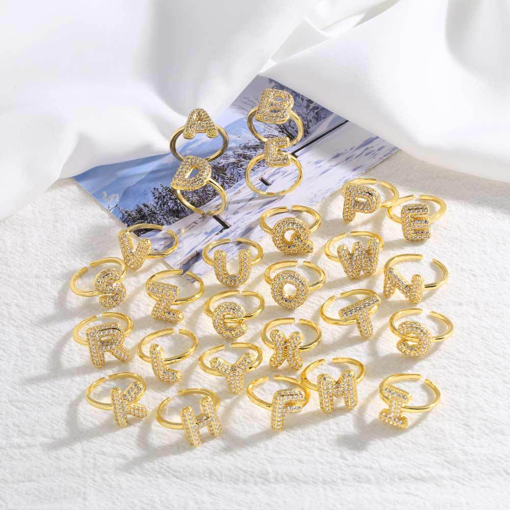 AS jewelry hot item inlaid with zircon 26 English letters open ring female rij23