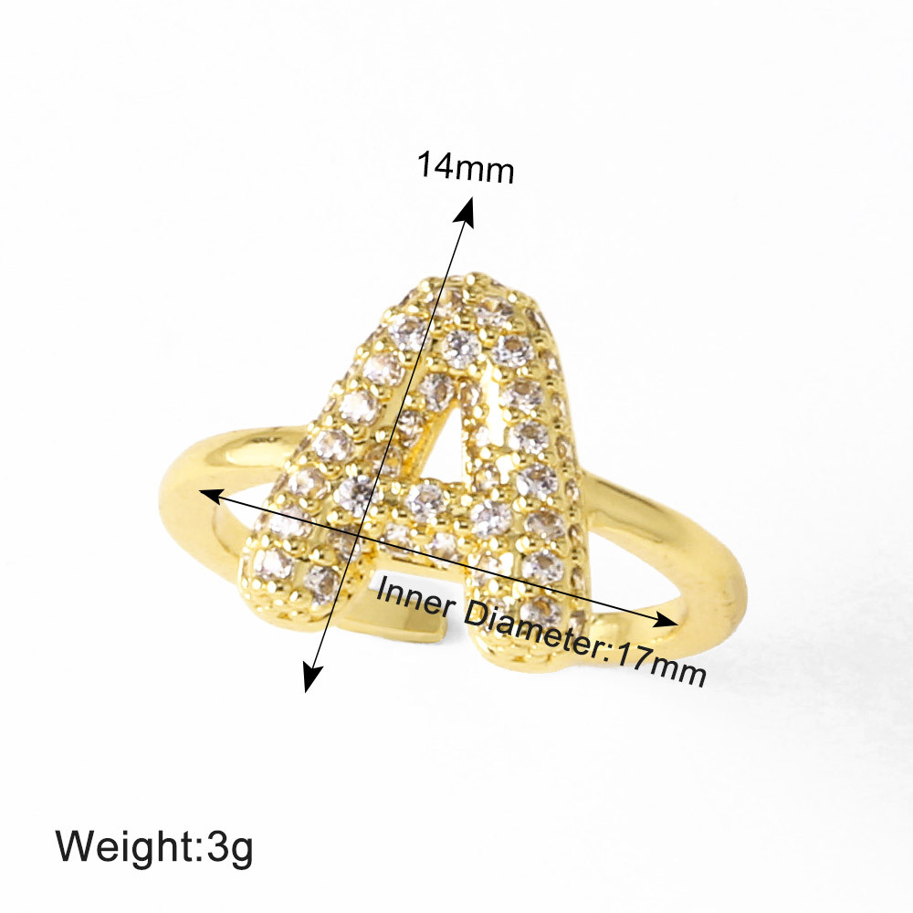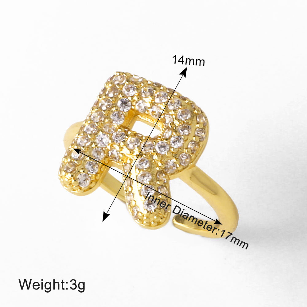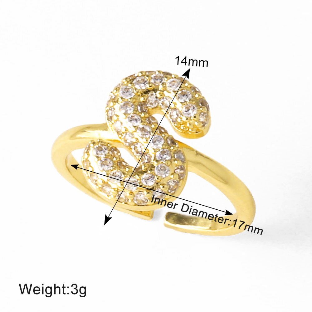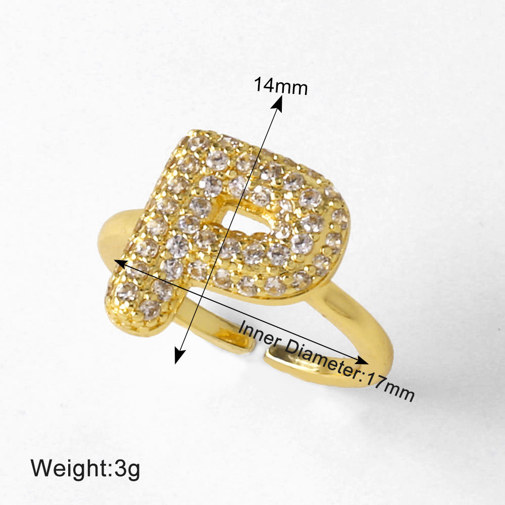 AS jewelry hot item inlaid with zircon 26 English letters open ring female rij23