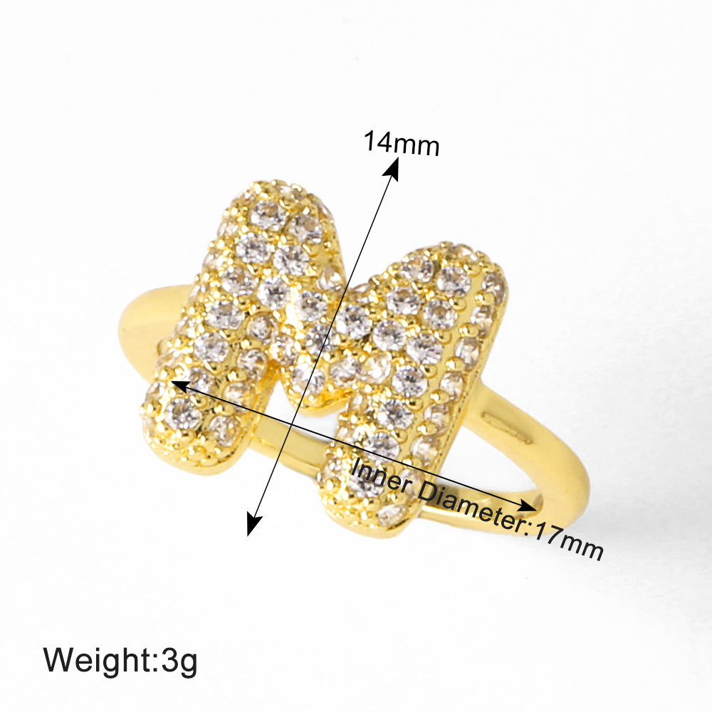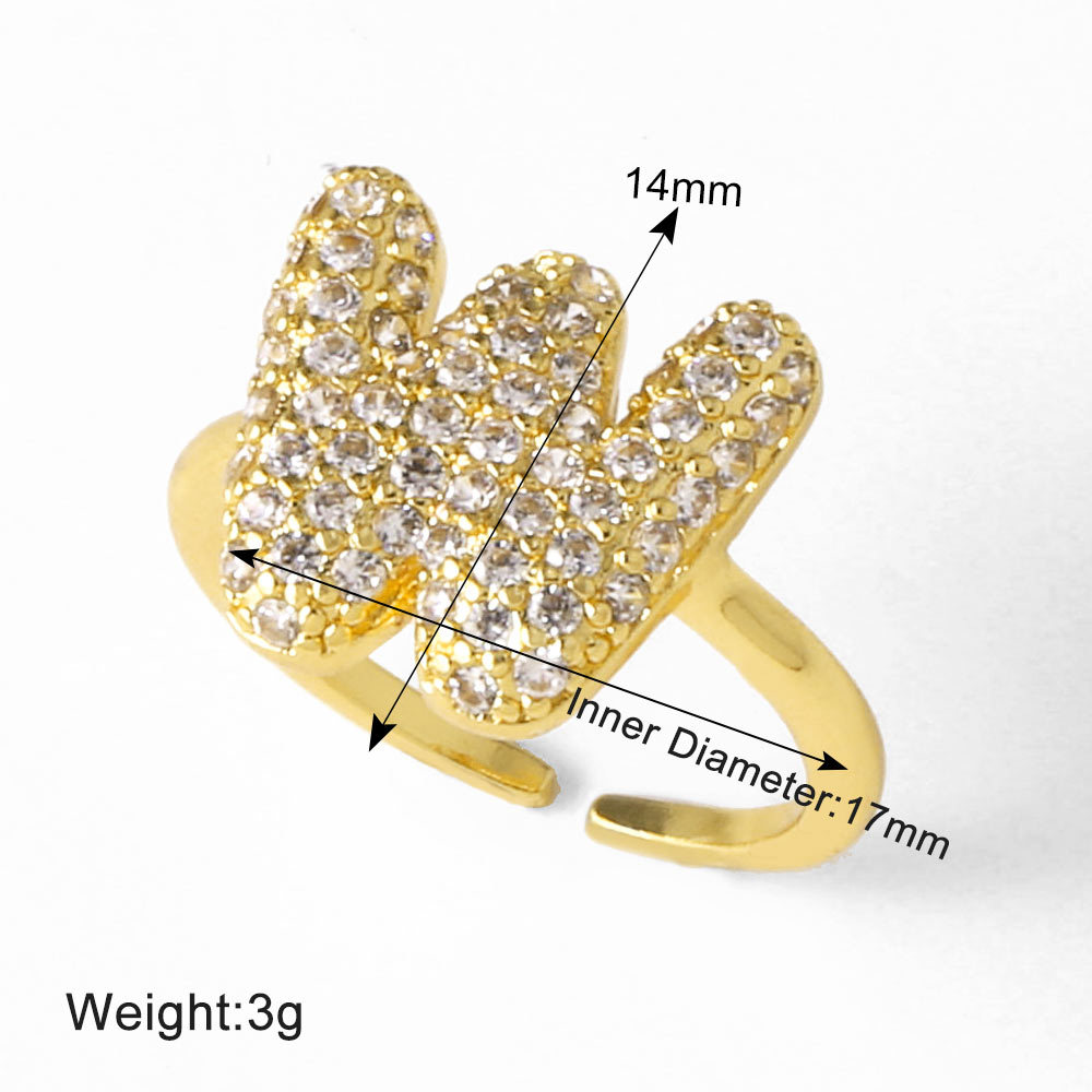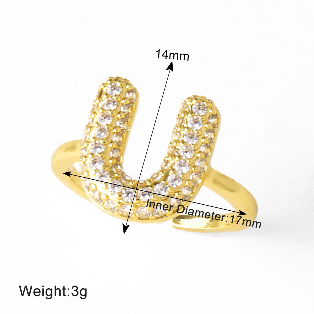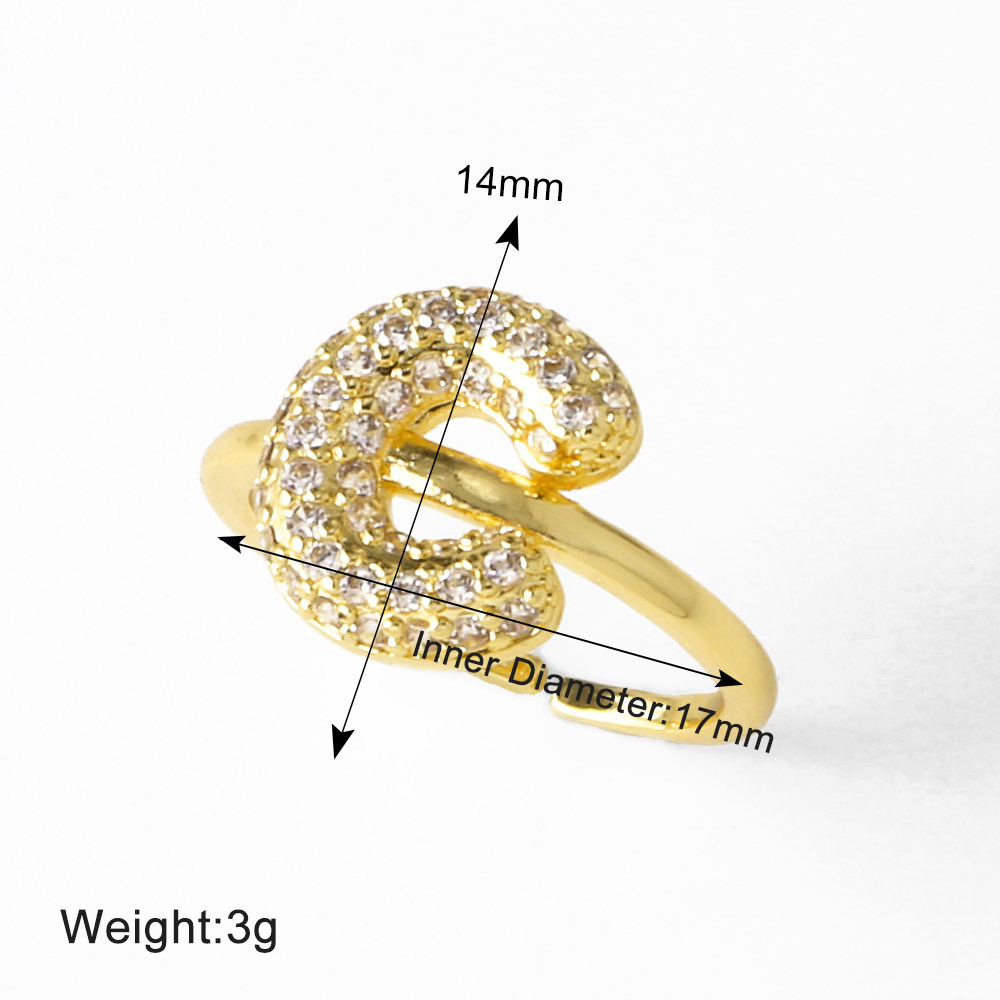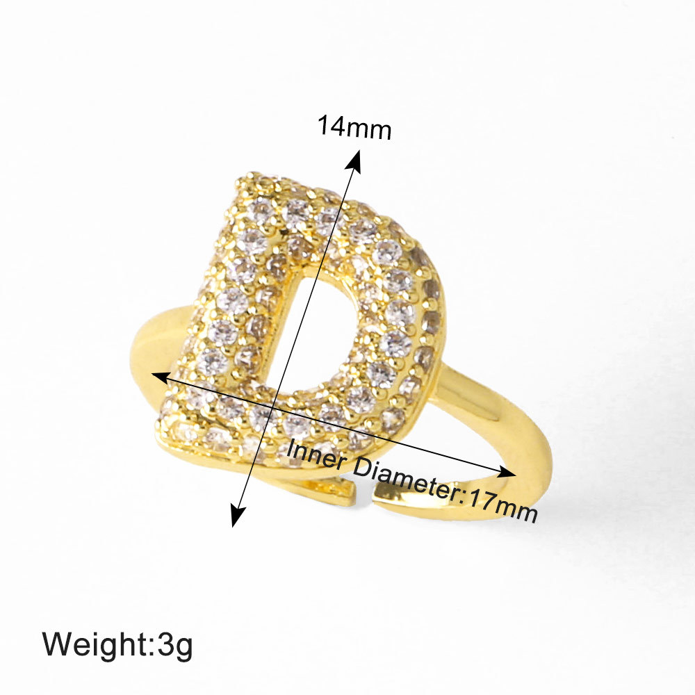 AS jewelry hot item inlaid with zircon 26 English letters open ring female rij23