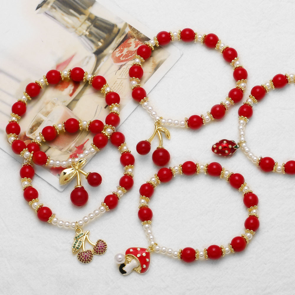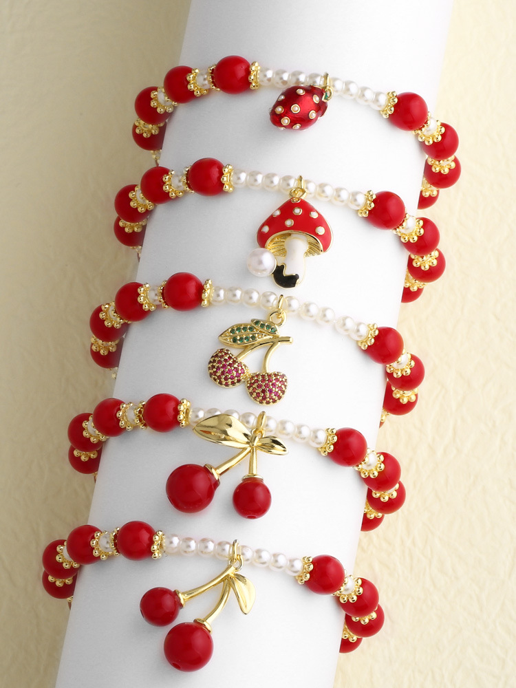 AS jewelry hot red beaded fruit cherry mushroom pendant bracelet hand jewelry bre40